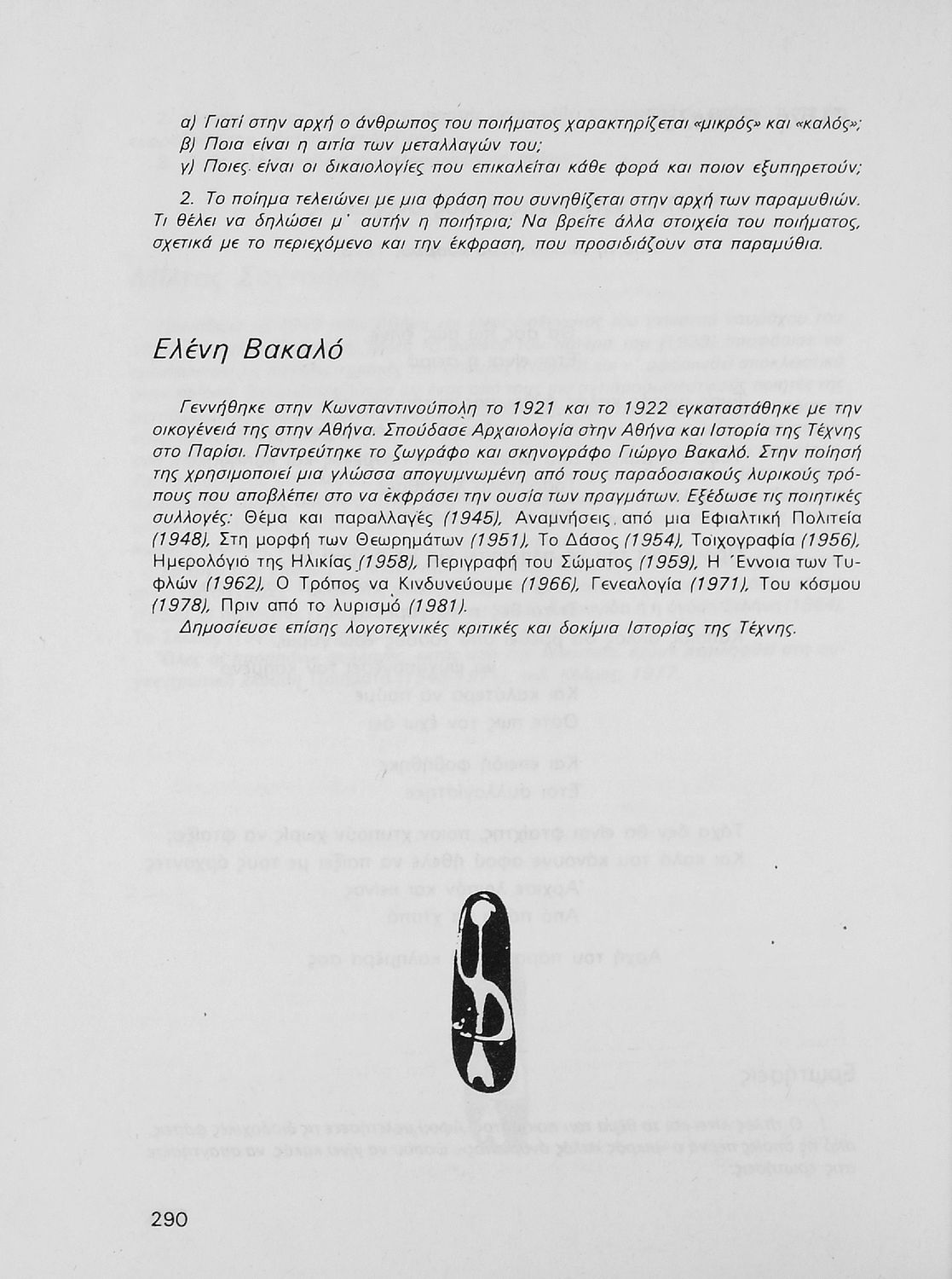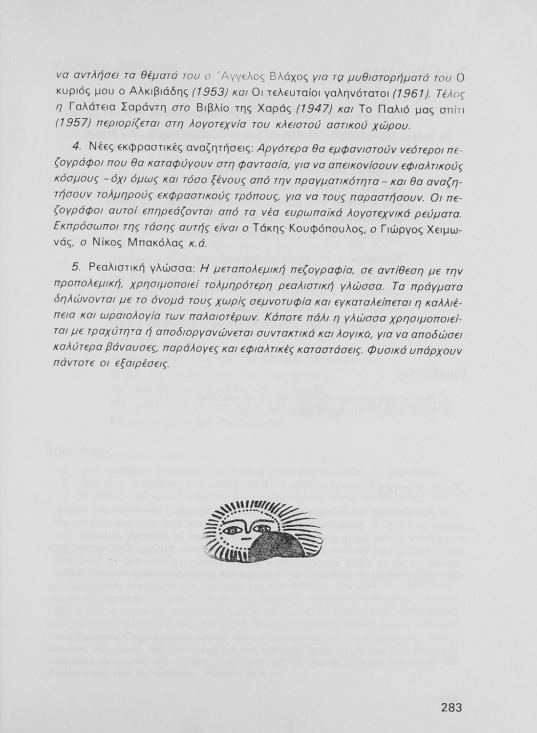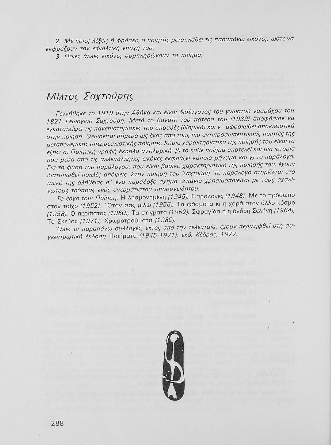 Σχολικό εγχειρίδιο Νέων Ελληνικών Β΄ Λυκείου που περιλαμβάνει πεζά και ποιήματα Ελλήνων συγγραφέων της επτανησιακής και ρομαντικής σχολής, και της νεότερης και μεταπολεμικής λογοτεχνίας και δοκίμια. Περιέχει και έργα κλασσικών ευρωπαίων συγγραφέων και εισαγωγικά σημειώματα.