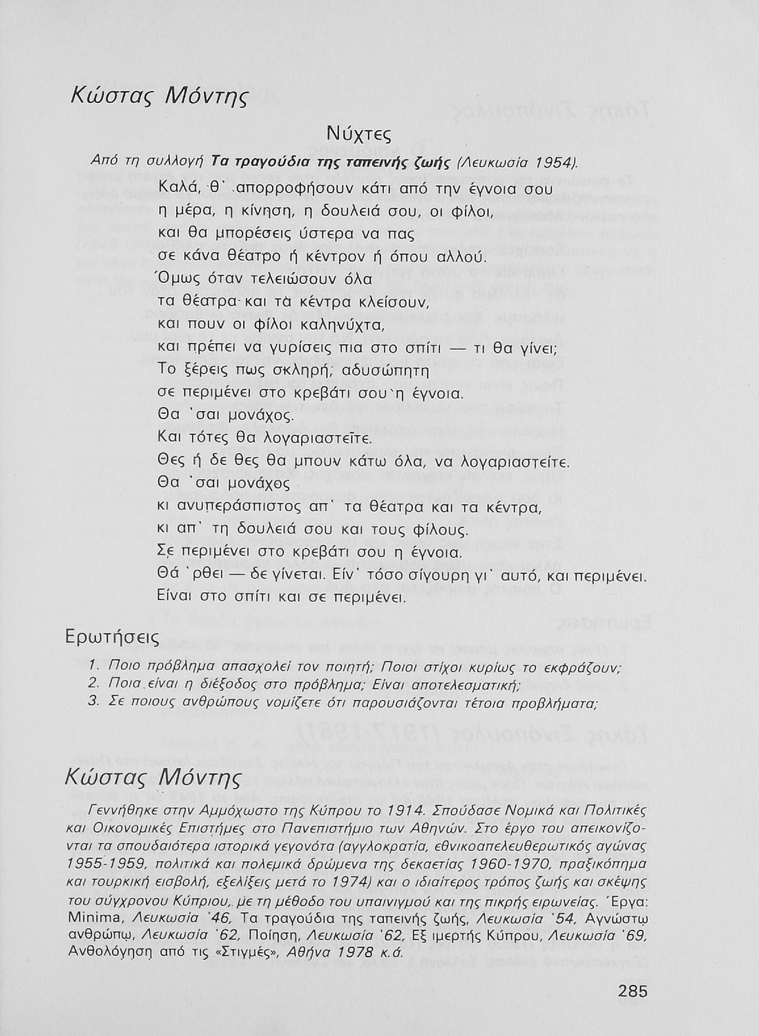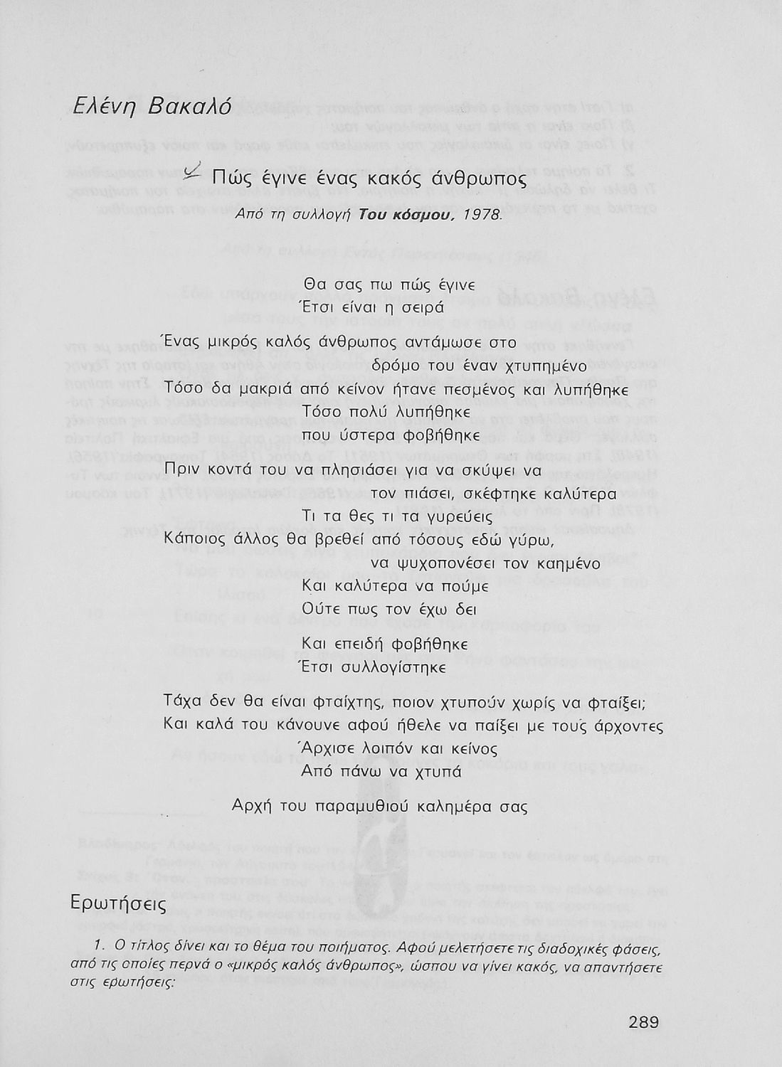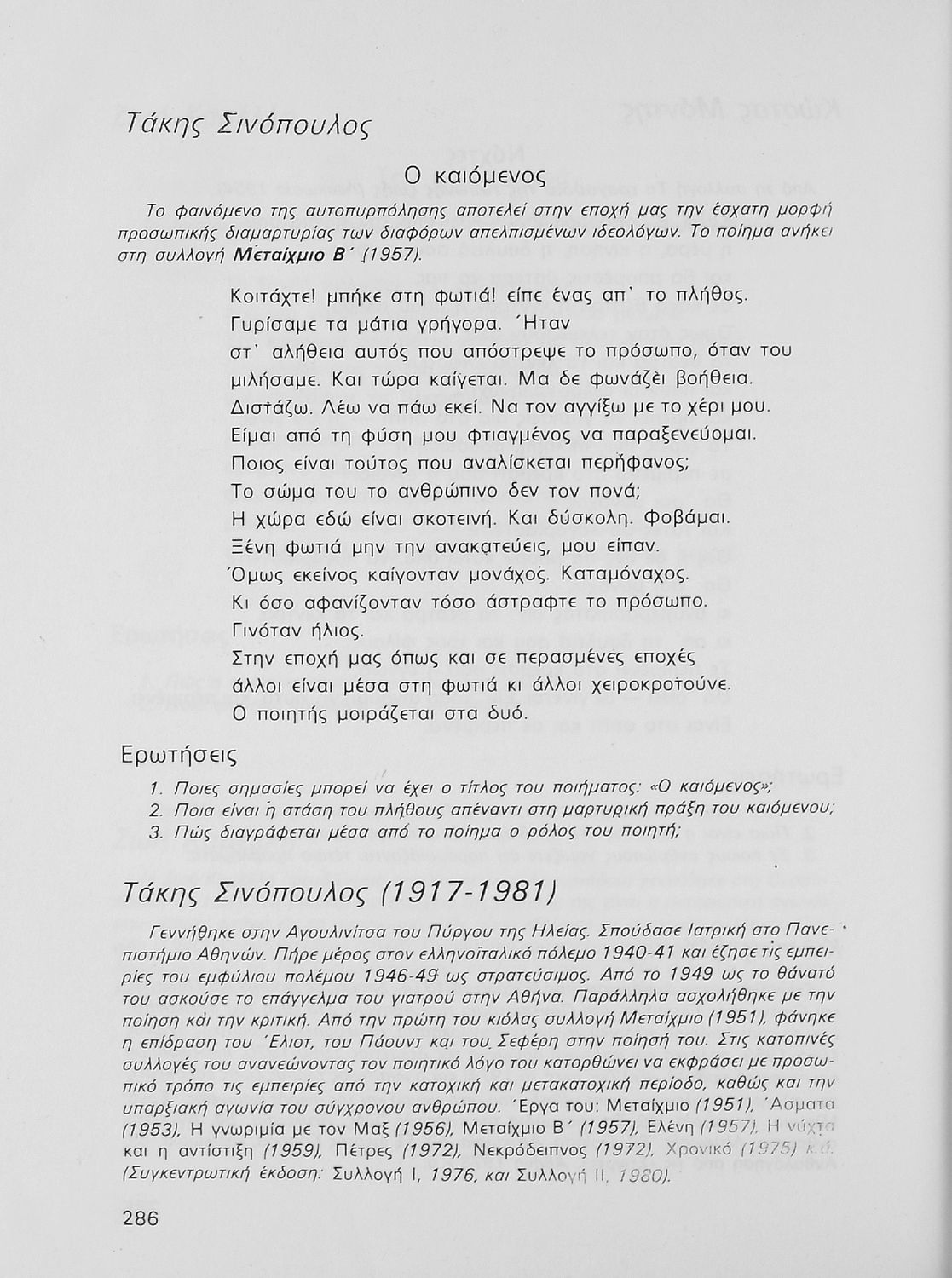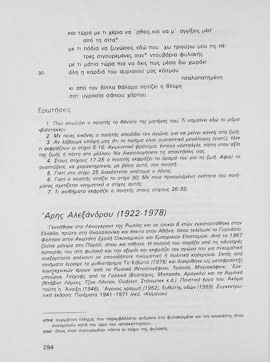 Σχολικό εγχειρίδιο Νέων Ελληνικών Α΄ Λυκείου που περιλαμβάνει πεζά, ποιήματα, δοκίμια και θεατρικά έργα σύγχρονων Ελλήνων και κλασσικών ξένων συγγραφέων, ερωτήσεις και βιογραφικά σημειώματα