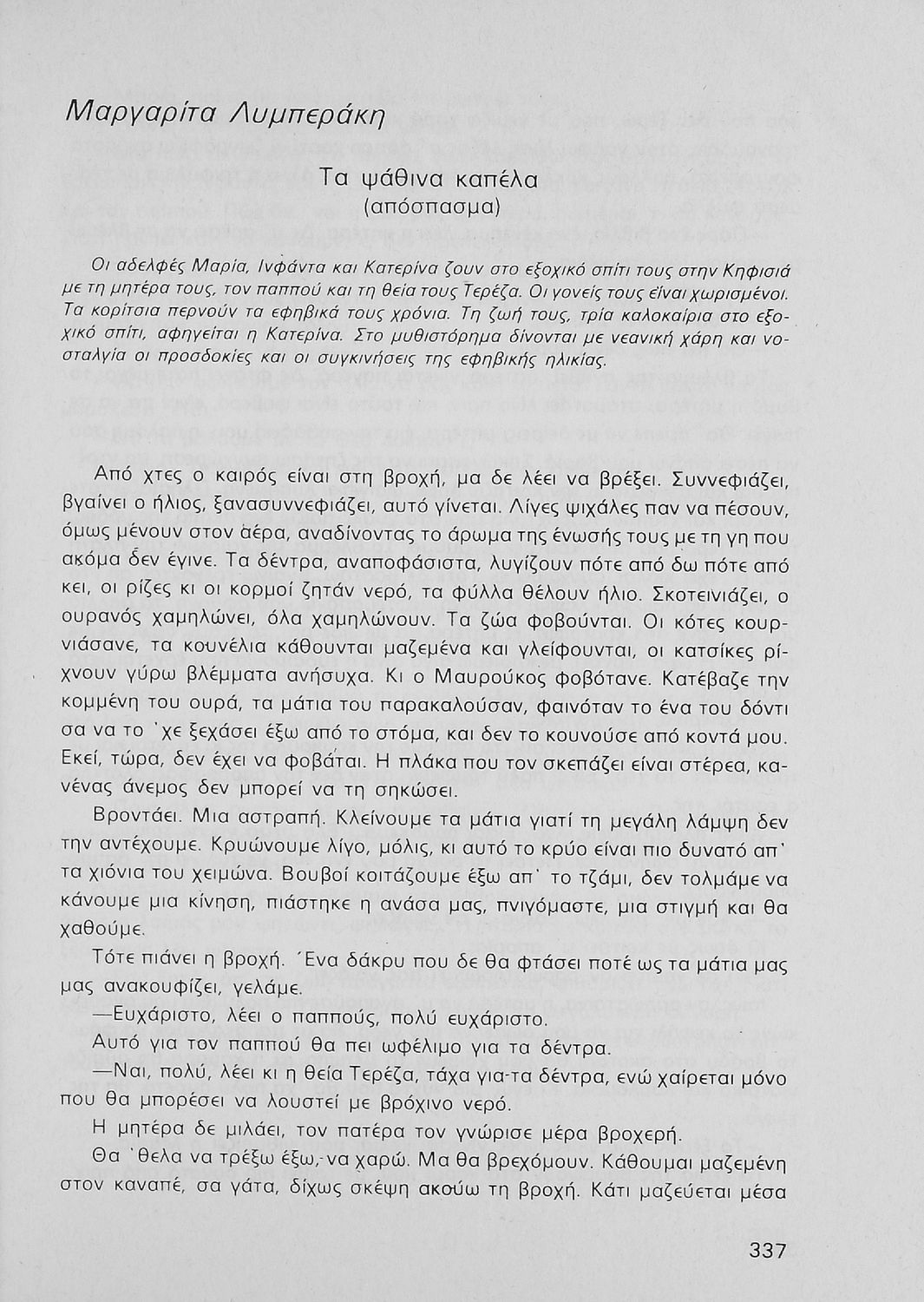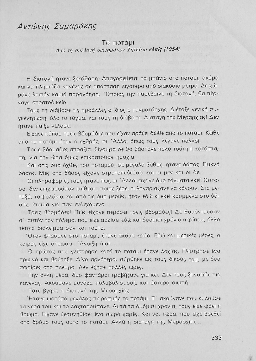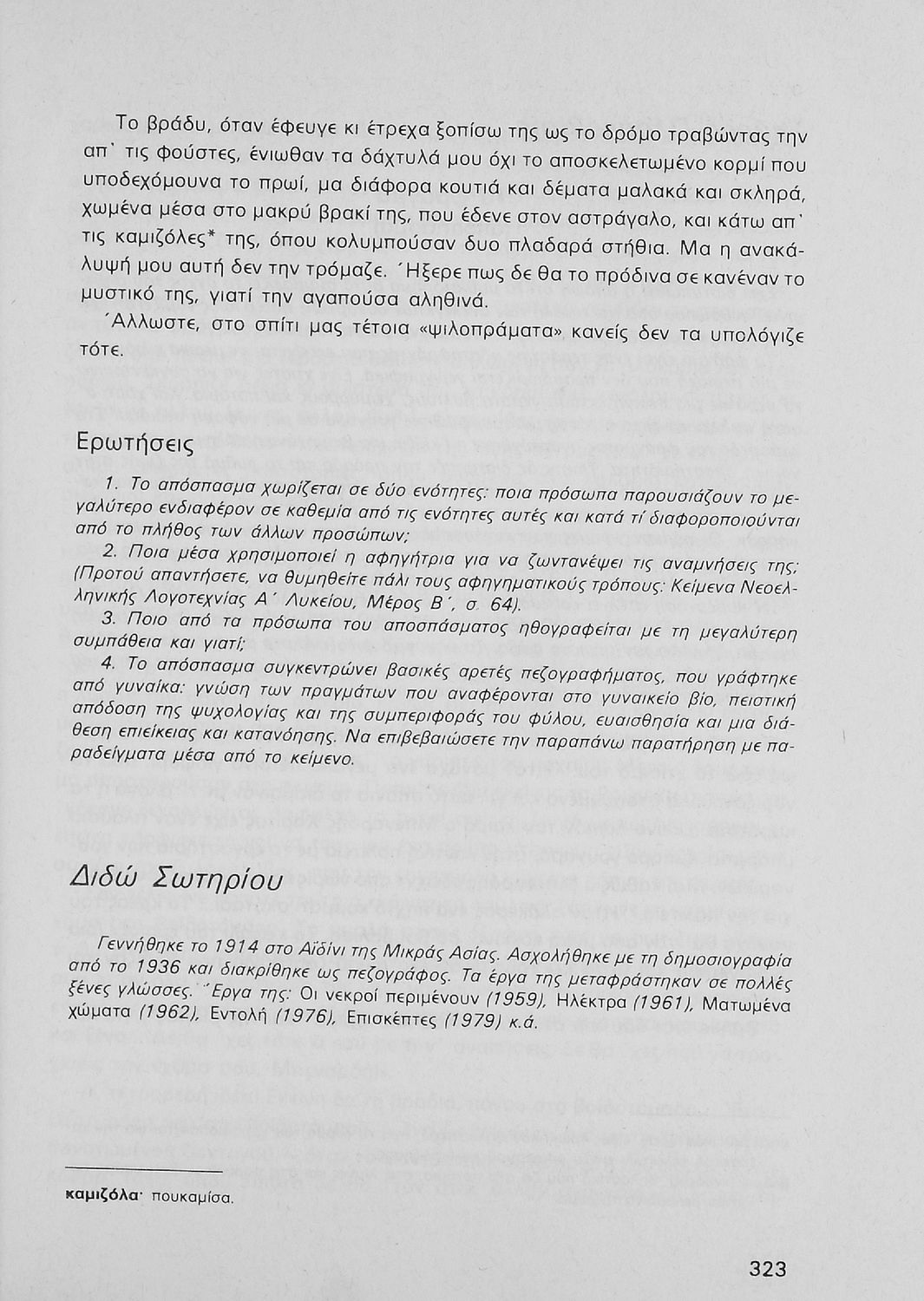 Σχολικό εγχειρίδιο Νέων Ελληνικών Α΄ Λυκείου που περιλαμβάνει πεζά, ποιήματα, δοκίμια και θεατρικά έργα σύγχρονων Ελλήνων και κλασσικών ξένων συγγραφέων, ερωτήσεις και βιογραφικά σημειώματα