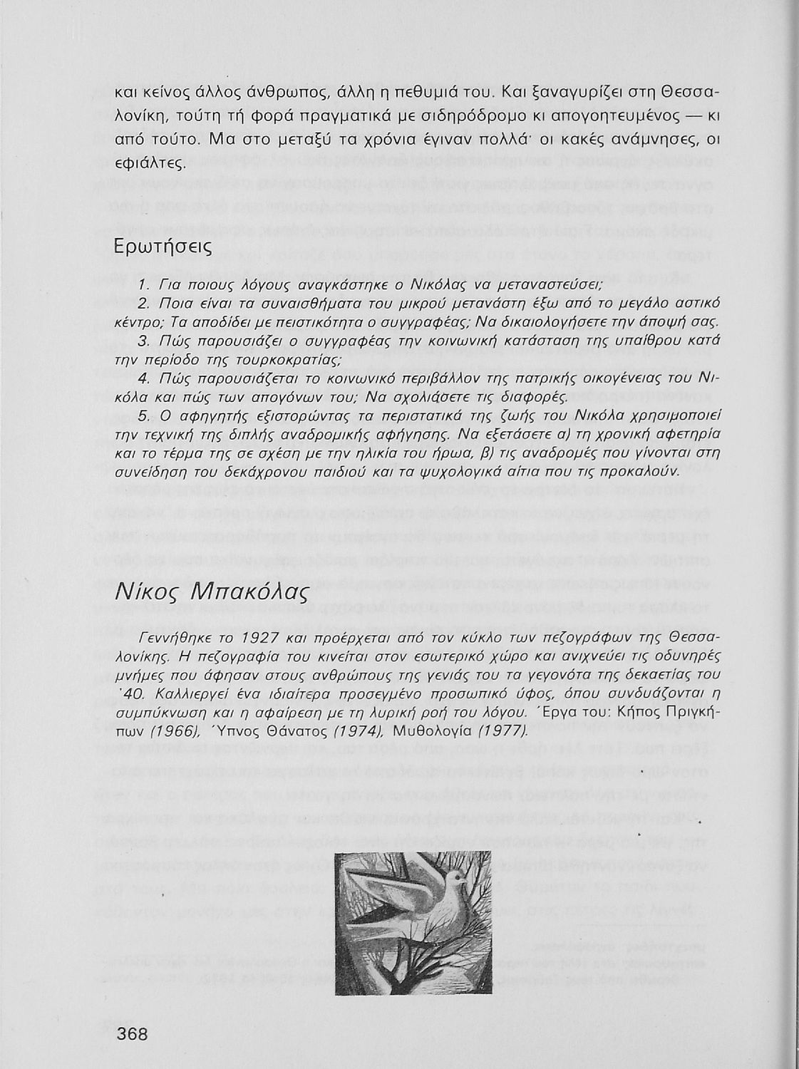Σχολικό εγχειρίδιο Νέων Ελληνικών Α΄ Λυκείου που περιλαμβάνει πεζά, ποιήματα, δοκίμια και θεατρικά έργα σύγχρονων Ελλήνων και κλασσικών ξένων συγγραφέων, ερωτήσεις και βιογραφικά σημειώματα
