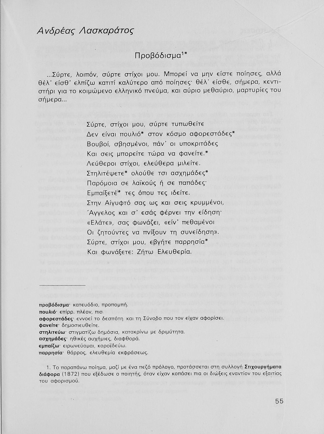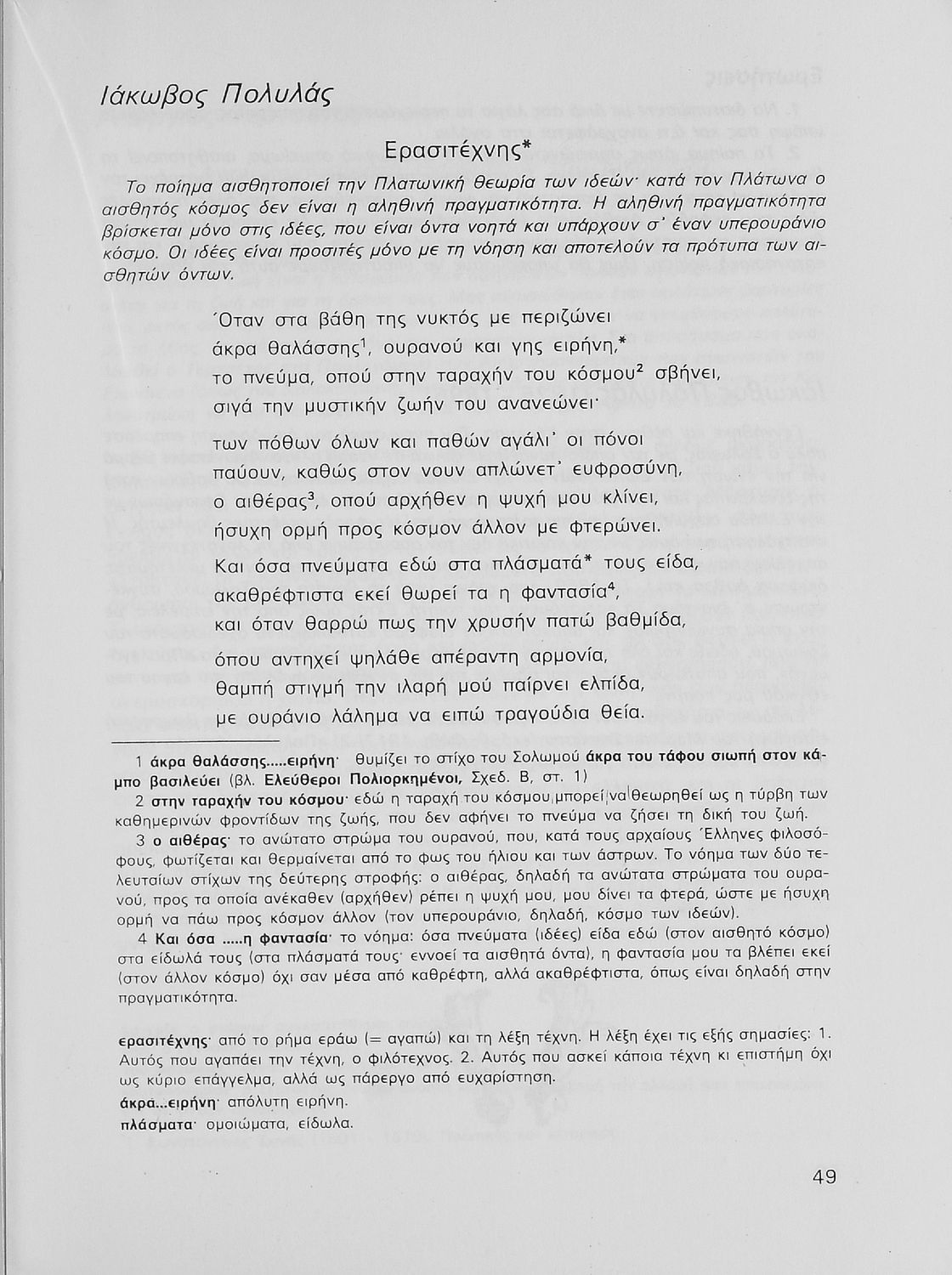 Σχολικό εγχειρίδιο Νέων Ελληνικών Α΄ Λυκείου που περιλαμβάνει πεζά, ποιήματα, δοκίμια και θεατρικά έργα σύγχρονων Ελλήνων και κλασσικών ξένων συγγραφέων, ερωτήσεις και βιογραφικά σημειώματα