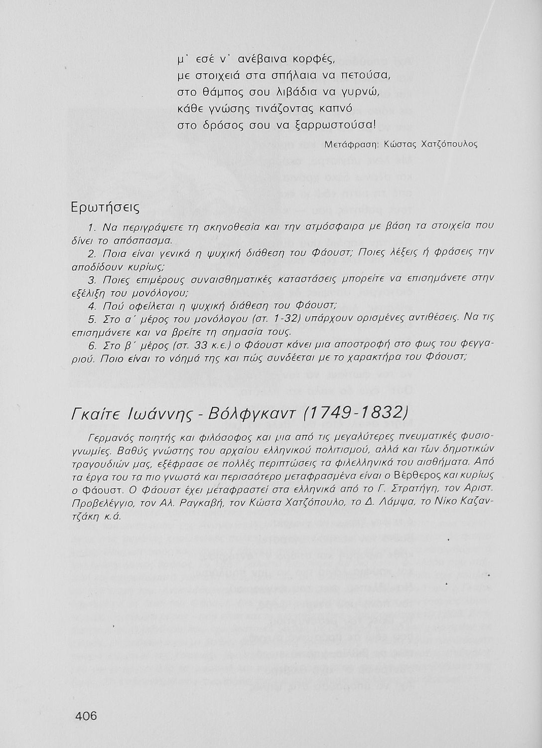 Σχολικό εγχειρίδιο Νέων Ελληνικών Α΄ Λυκείου που περιλαμβάνει πεζά, ποιήματα, δοκίμια και θεατρικά έργα σύγχρονων Ελλήνων και κλασσικών ξένων συγγραφέων, ερωτήσεις και βιογραφικά σημειώματα