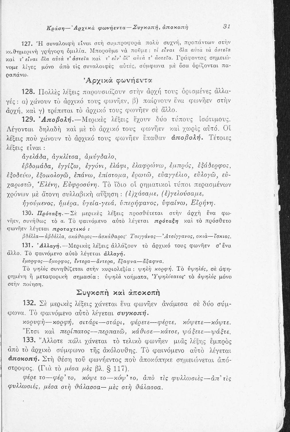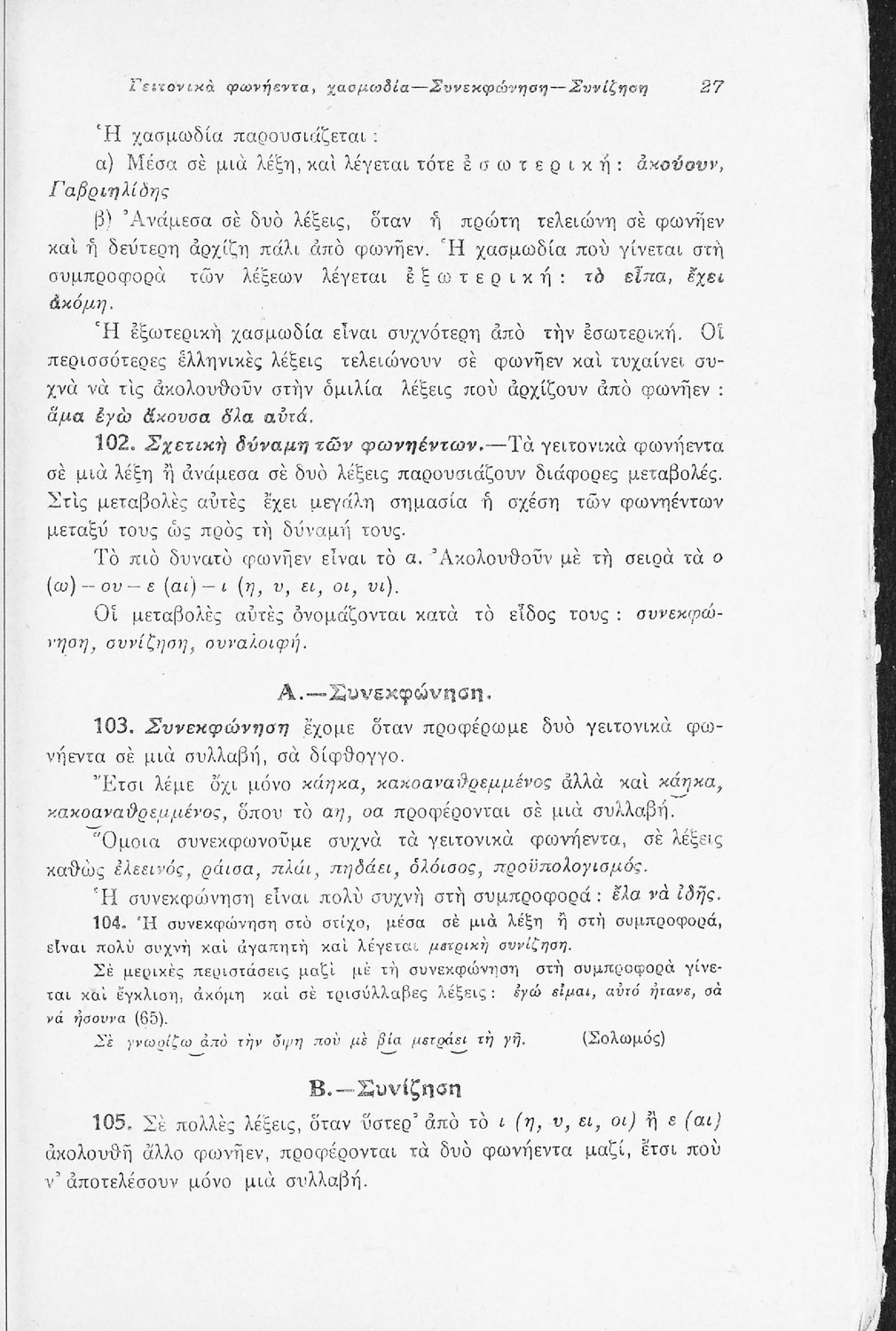 Σχολικό εγχειρίδιο Συντακτικού που γράφηκε από επιτροπή Καθηγητών που ορίστηκε από το Υπουργείο των Θρησκευμάτων και της Εθνικής Παιδείας. Περιλαμβάνει κανόνες και παραδείγματα του συντακτικού της Δημοτικής.