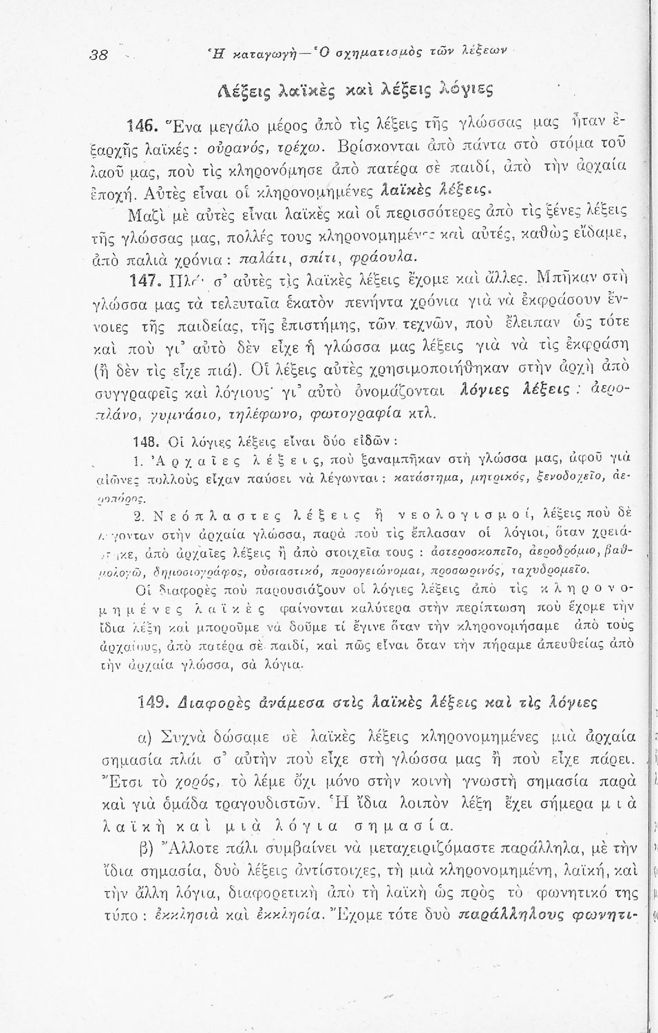 Σχολικό εγχειρίδιο Γραμματικής που αποτελεί αναπροσαρμογή του βιβλίου του Μανόλη Τριανταφυλλίδη στη σχολική πραγματικότητα. Το σχολικό εγχειρίδιο αποτελούσε βοήθημα για μαθητές και εκπαιδευτικούς στο γλωσσικό ...