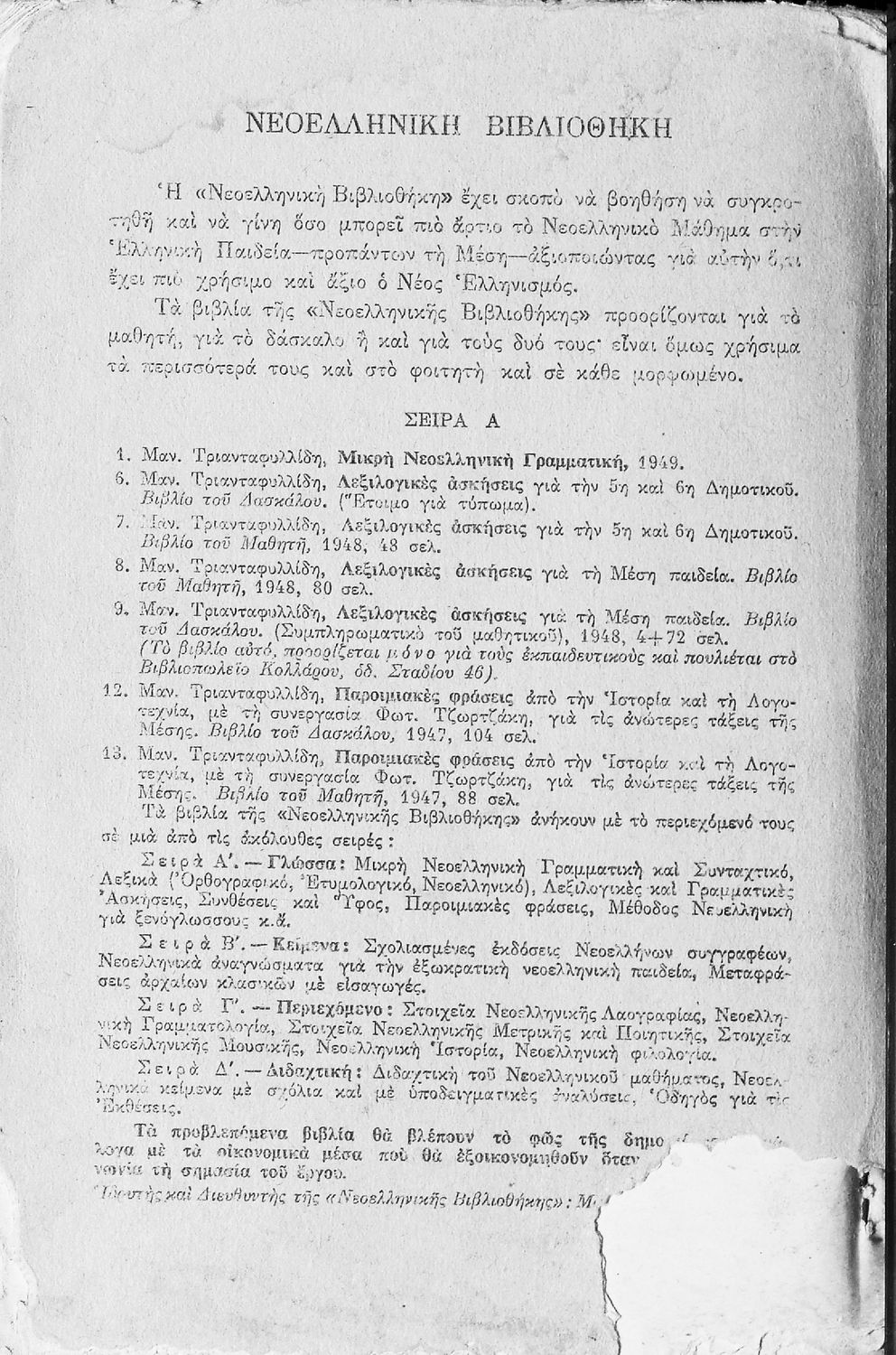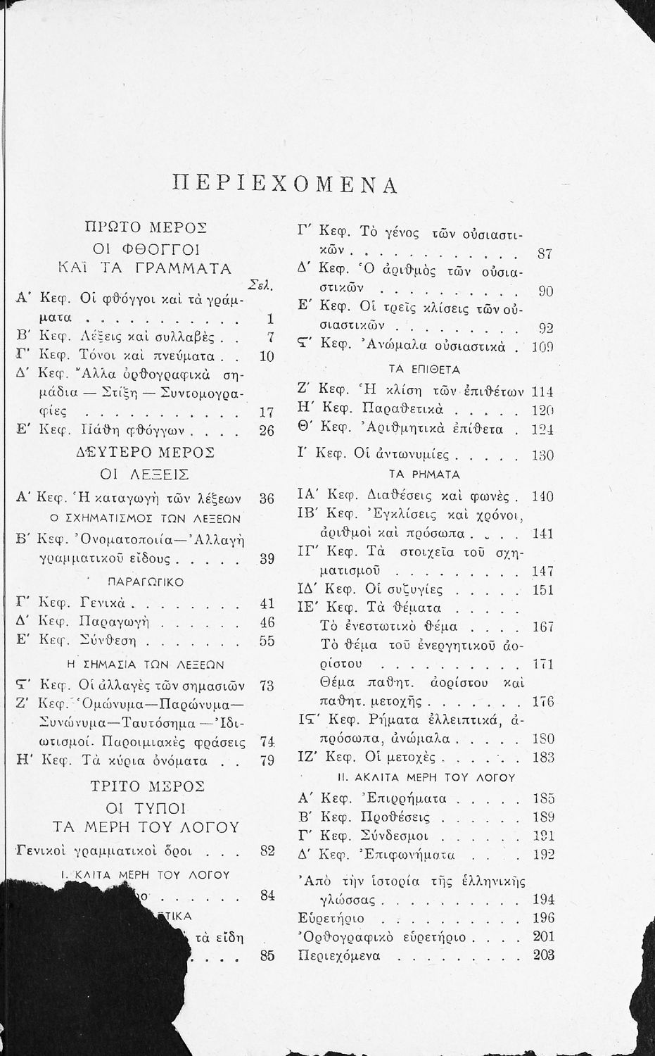 Σχολικό εγχειρίδιο Γραμματικής για τη ΣΤ΄ Δημοτικού και τις τάξεις της Μέσης εκπαίδευσης. Περιέχει τη διδασκαλία της Γραμματικής της δημοτικής και για τους παιδαγωγούς αλλά και τους μαθητές.