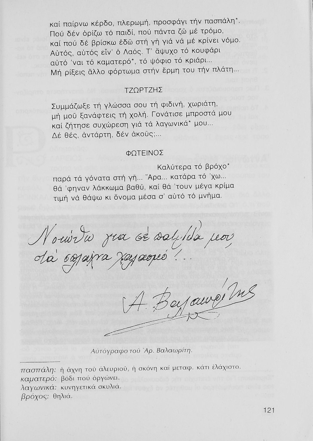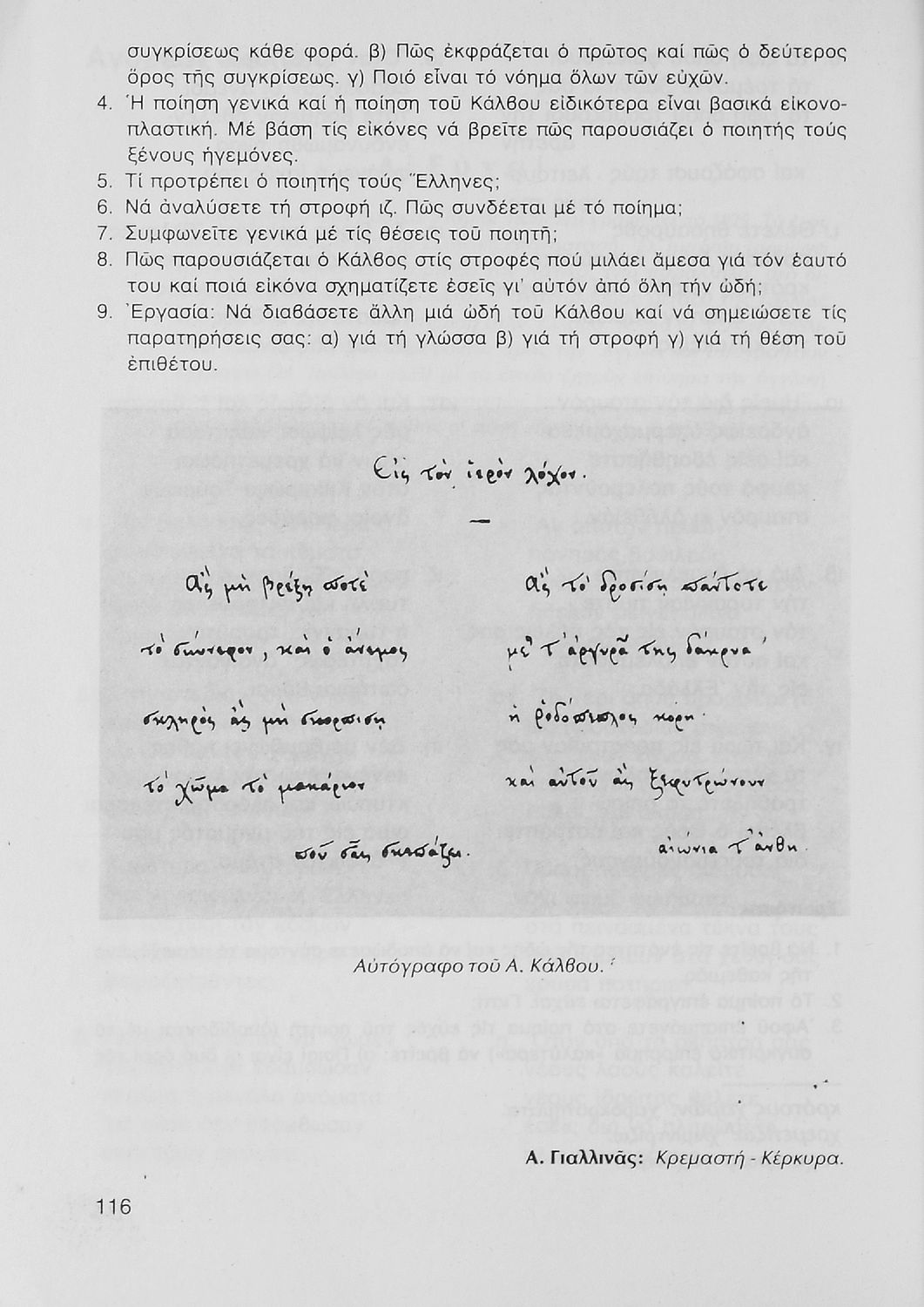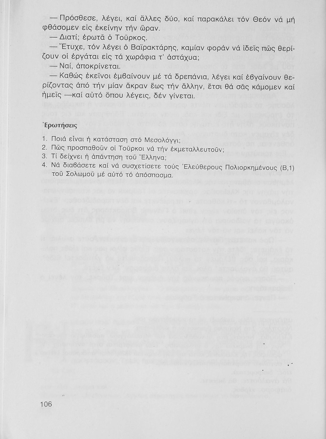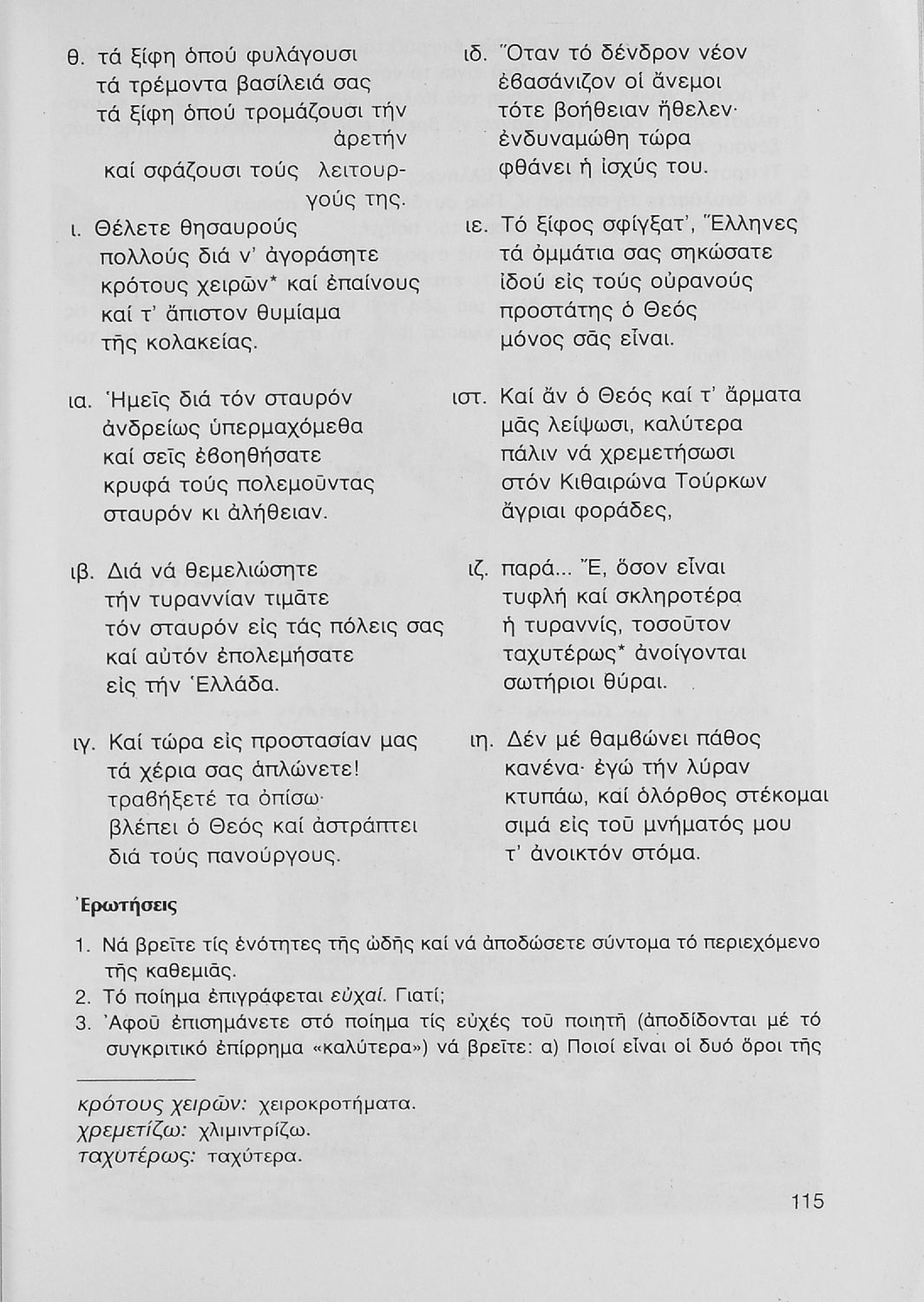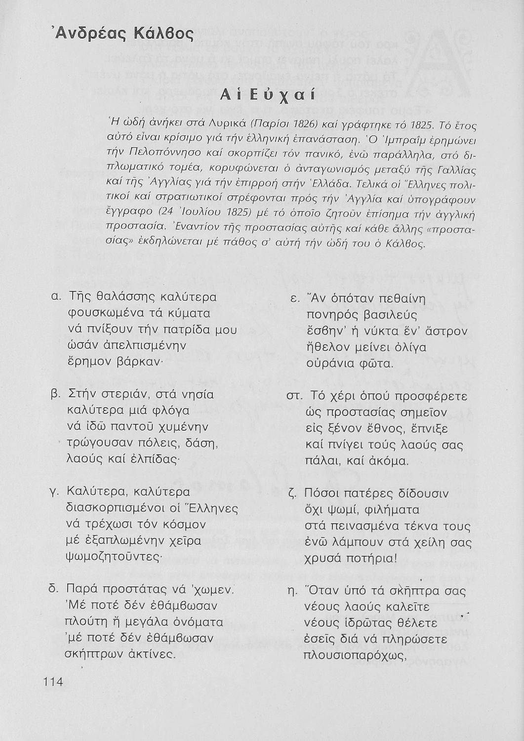 Σχολικό εγχειρίδιο Νέων Ελληνικών Γ΄ Γυμνασίου που περιλαμβάνει δημοτικά τραγούδια, και χαρακτηριστικά δείγματα της κρητικής λογοτεχνίας, της επτανησιακής και ρομαντικής σχολής, της Νέας Αθηναϊκής Σχολής και της νεότερης και μεταπολεμικής λογοτεχνίας. Περιέχει και έργα σύγχρονων ξένων συγγραφέων, βιογραφικά και εισαγωγικά σημειώματα.