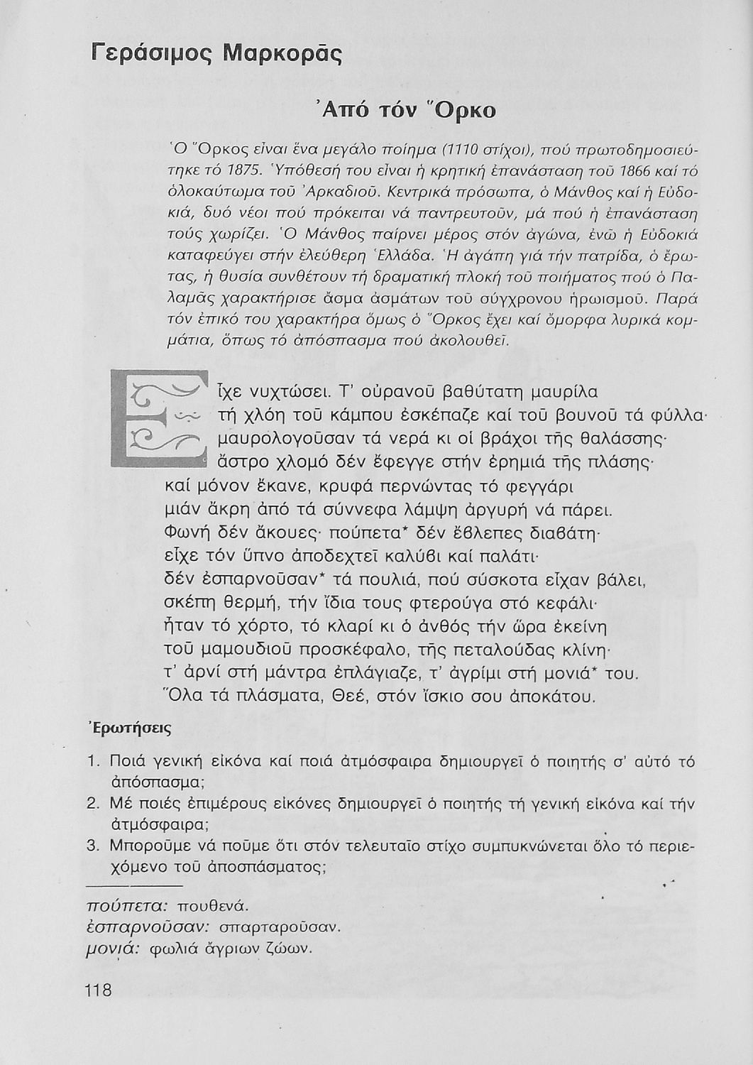 Κείμενα Νεοελληνικής Λογοτεχνίας Γ΄ Γυμνασίου