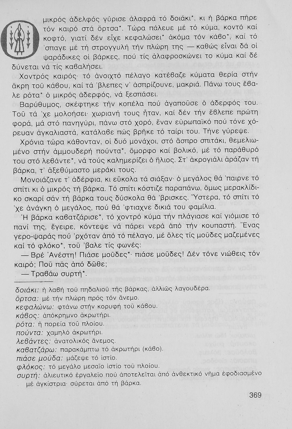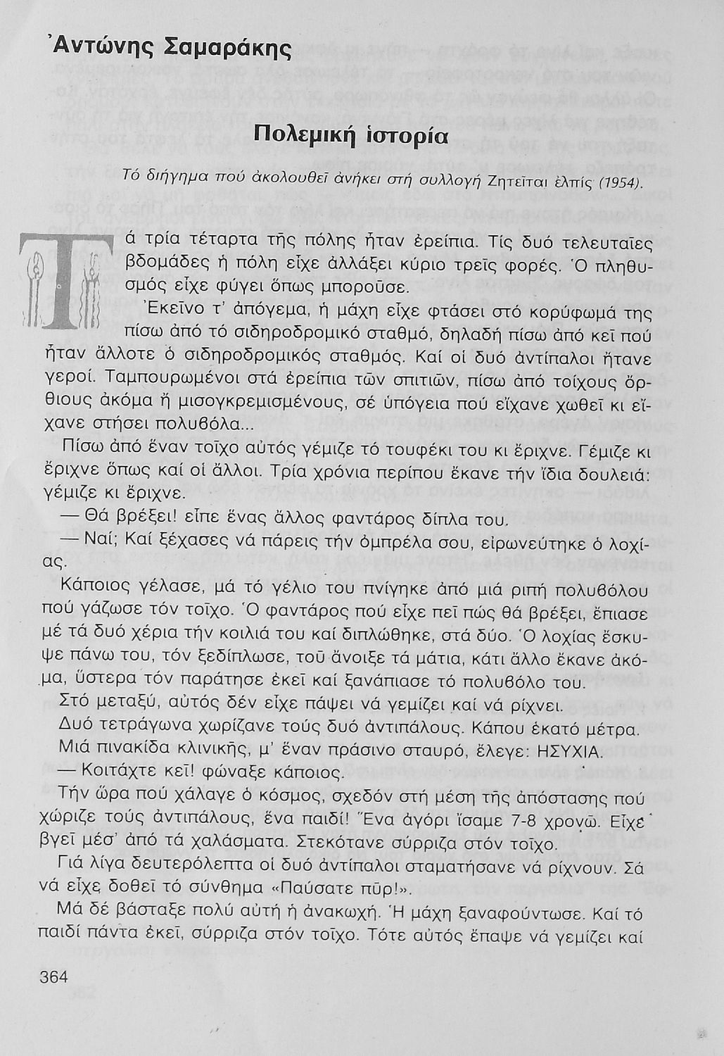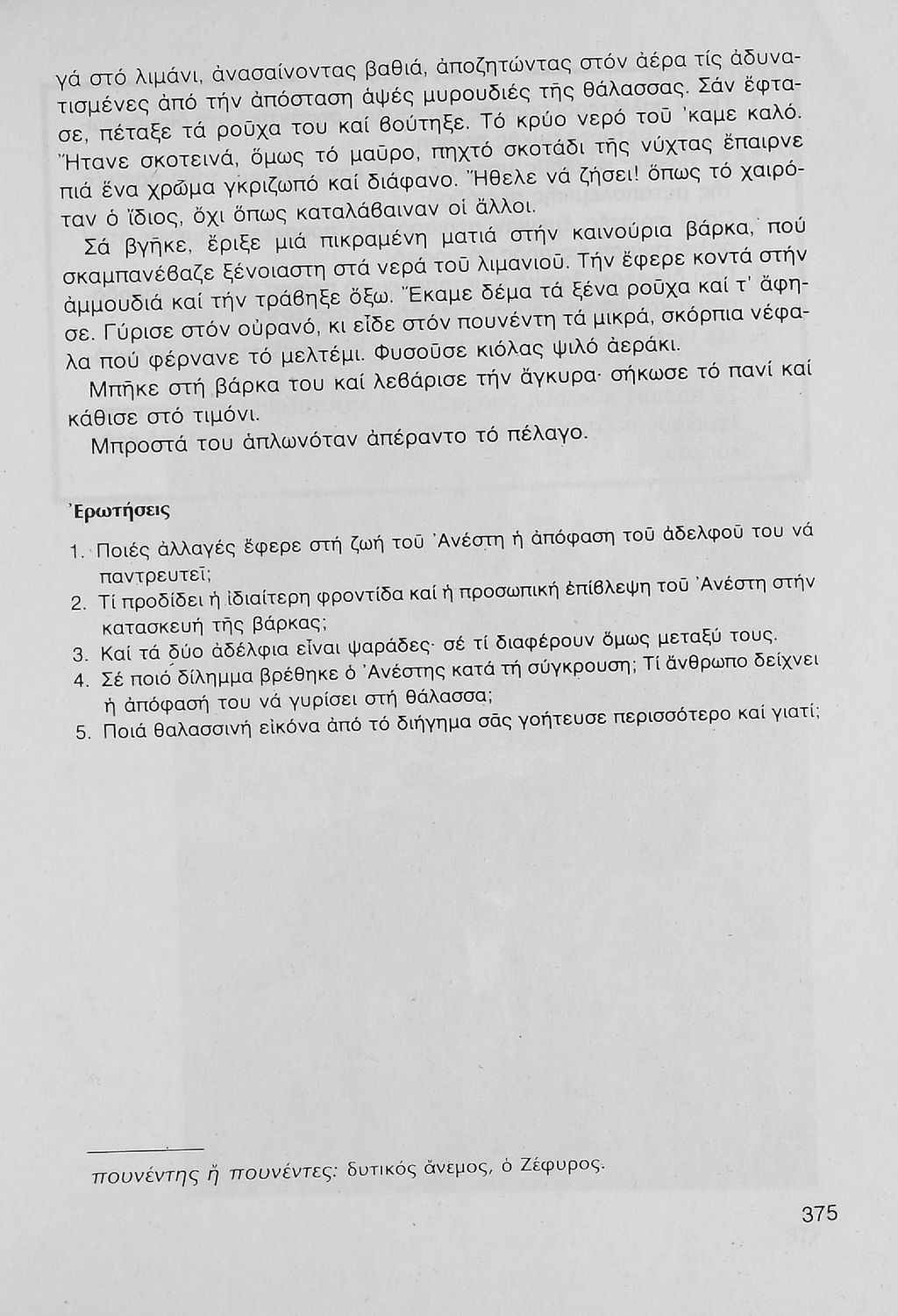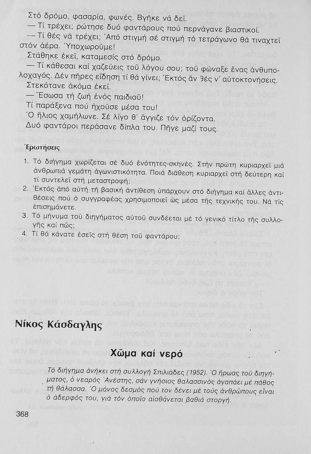 Σχολικό εγχειρίδιο Νέων Ελληνικών Α΄ Γυμνασίου που περιλαμβάνει δοκίμια, πεζά και ποιήματα Ελλήνων συγγραφέων και δημοτικά τραγούδια εμπνευσμένα από τη θρησκευτική, εθνική και κοινωνική ζωή, τη "δοκιμασία της ...