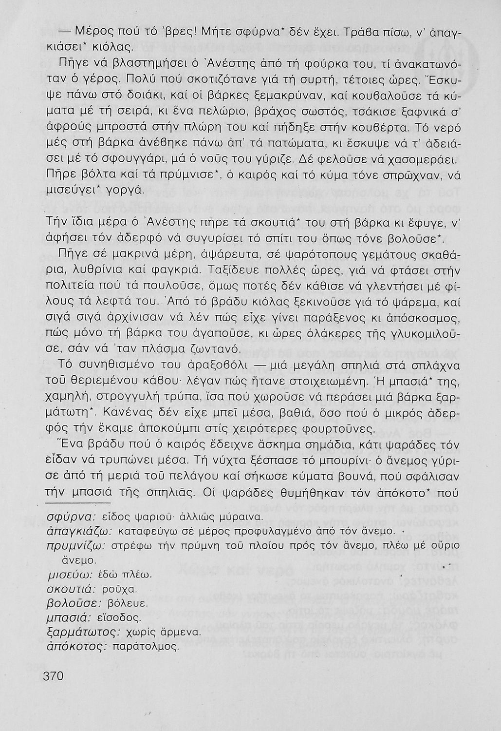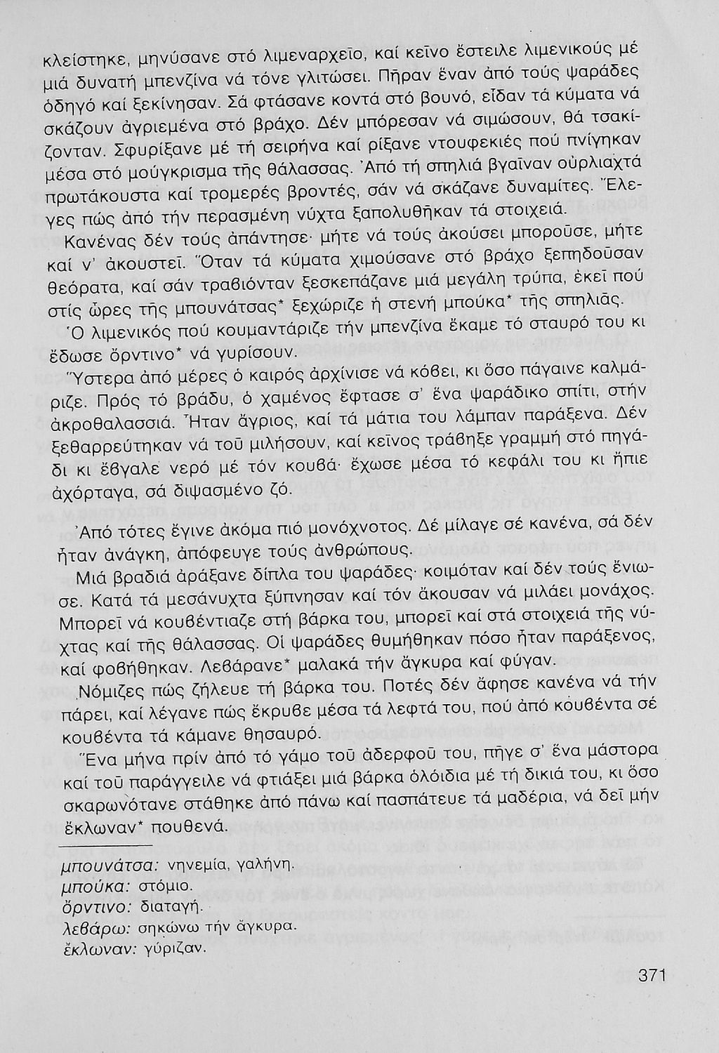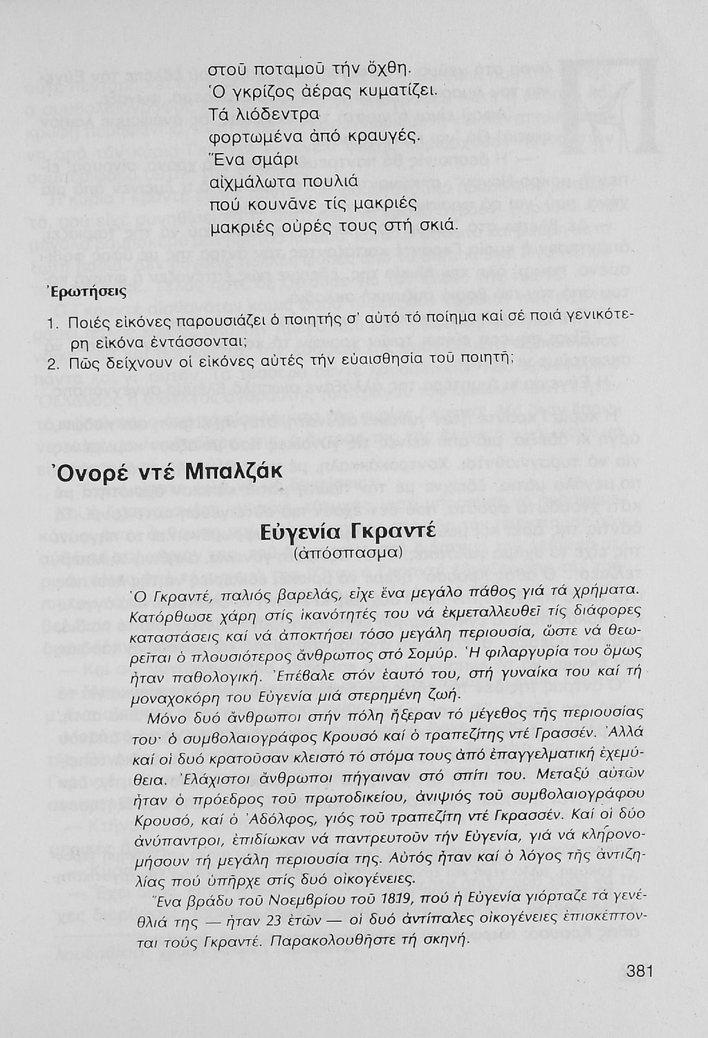 Σχολικό εγχειρίδιο Νέων Ελληνικών Γ΄ Γυμνασίου που περιλαμβάνει δημοτικά τραγούδια, και χαρακτηριστικά δείγματα της κρητικής λογοτεχνίας, της επτανησιακής και ρομαντικής σχολής, της Νέας Αθηναϊκής Σχολής και της νεότερης και μεταπολεμικής λογοτεχνίας. Περιέχει και έργα σύγχρονων ξένων συγγραφέων, βιογραφικά και εισαγωγικά σημειώματα.