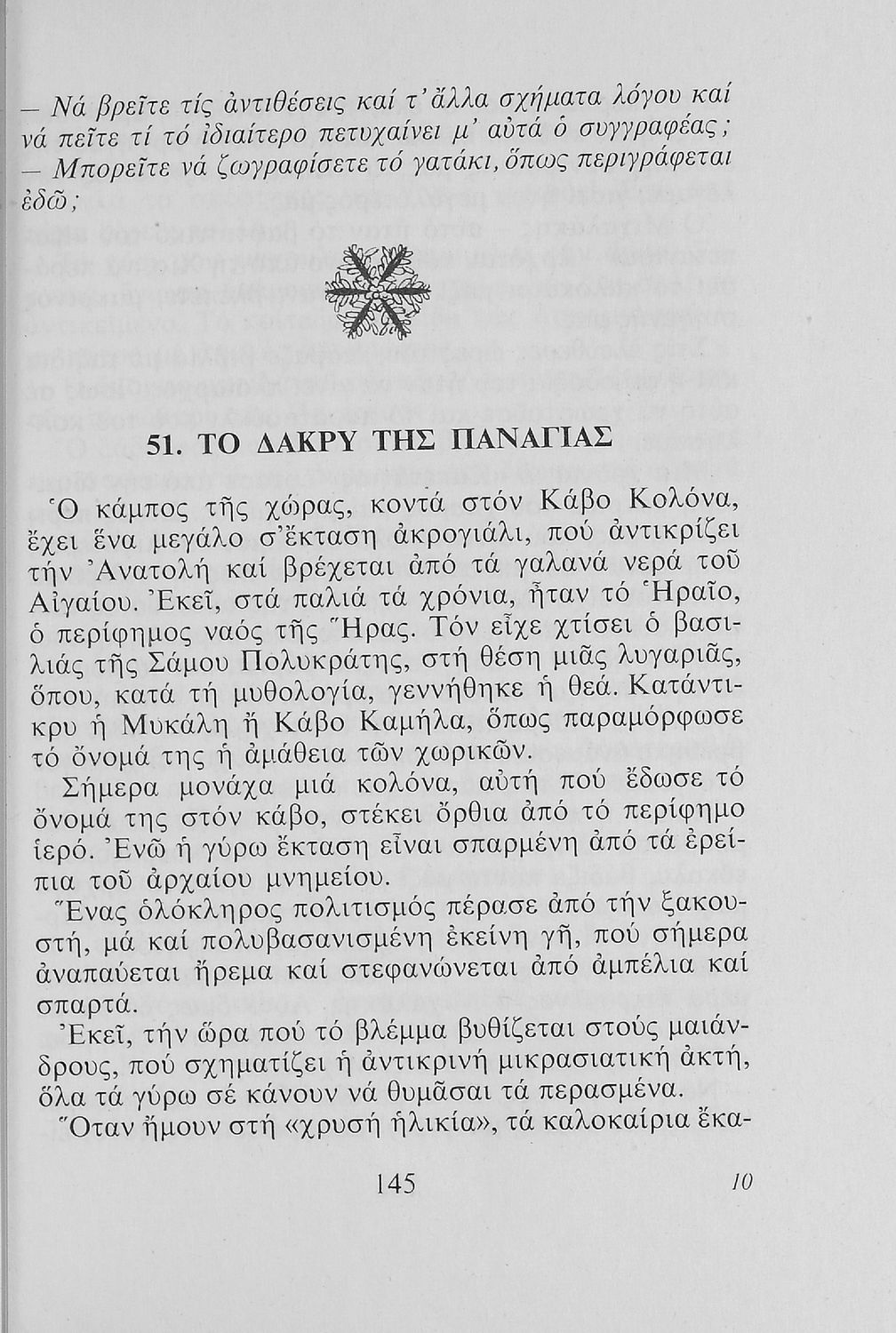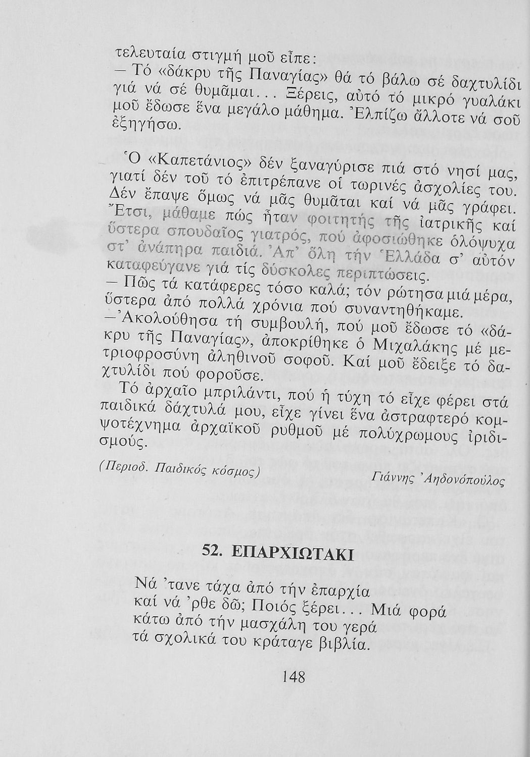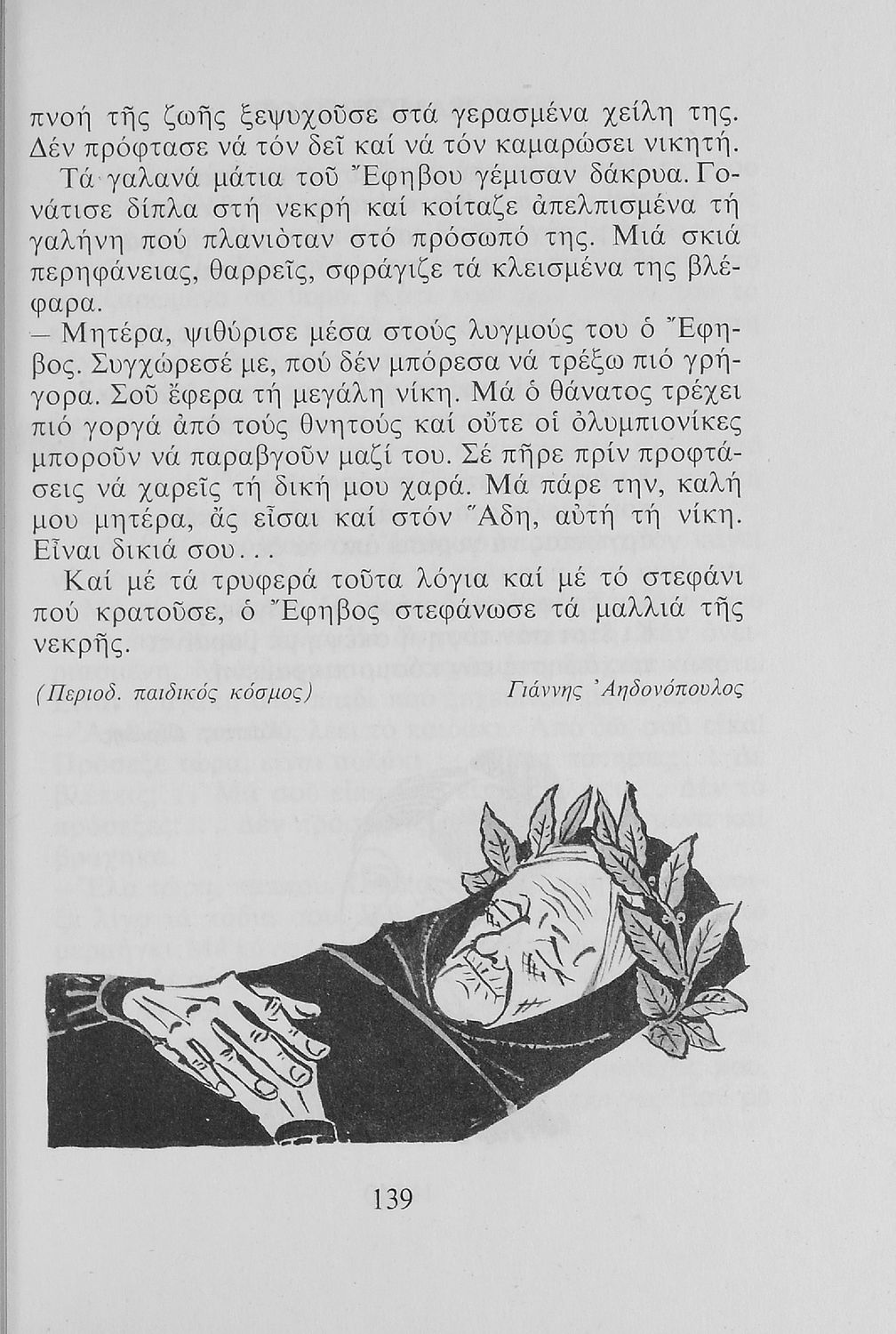 Αναγνωστικό Ε΄ Δημοτικού που περιέχει πεζά και ποιήματα εμπνευσμένα από τη θρησκευτική, εθνική, κοινωνική ζωή καθώς και από τις ασχολίες των Ελλήνων, την αρχαία και σύγχρονη ελληνική ιστορία και τον πολιτισμό. Περιλαμβάνει βιογραφίες των συγγραφέων.