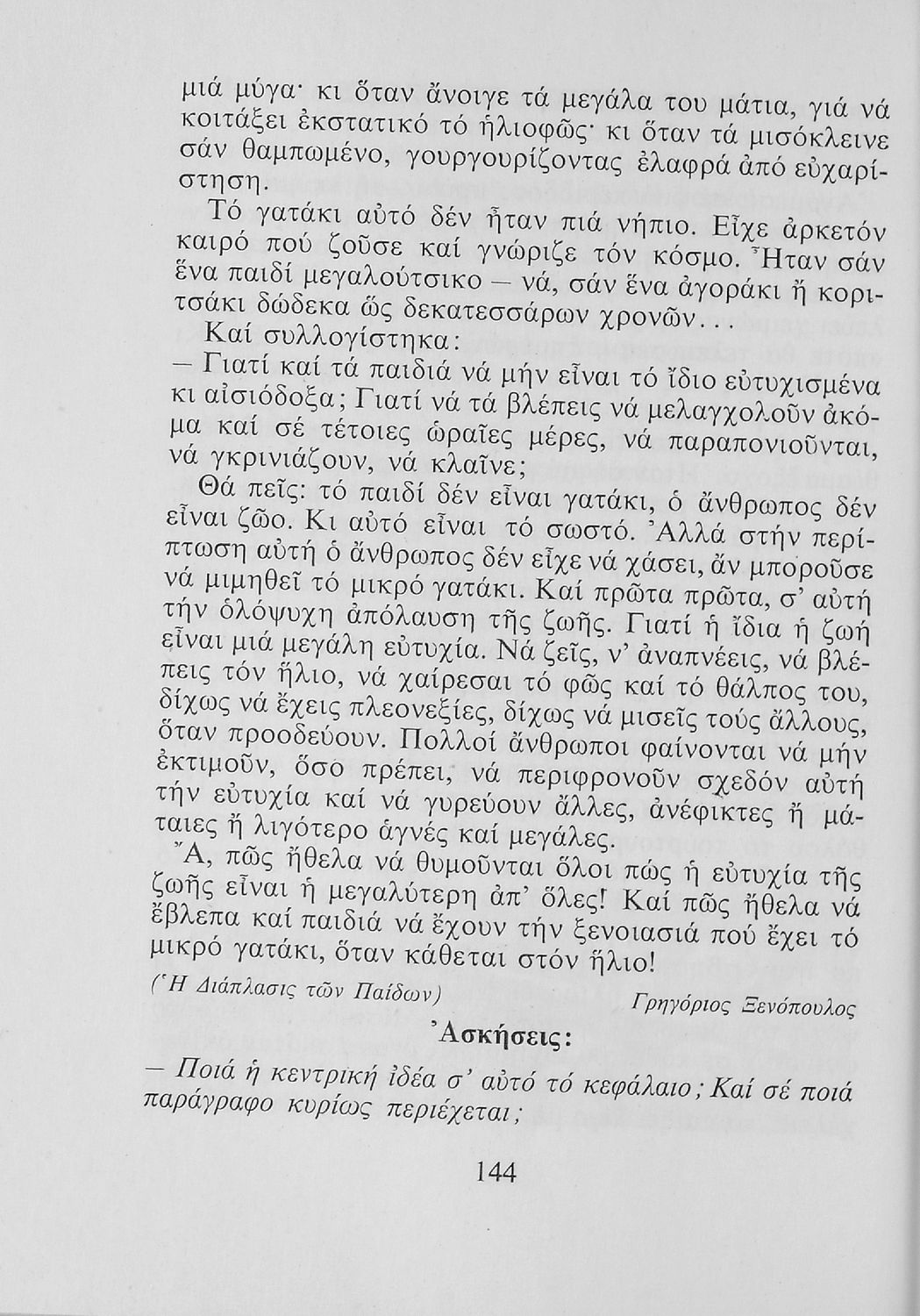Βαθμίδα εκπαίδευσης: Πρωτοβάθμια Τάξη: Ε' Δημοτικού Μάθημα: Νέα Ελληνικά Γλώσσα: Δημοτική Παρουσίαση περιεχομένου: Αναγνωστικό Ε΄ Δημοτικού που περιέχει πεζά και ποιήματα εμπνευσμένα από τη θρησκευτική, εθνική, κοινωνική ζωή καθώς και από τις ασχολίες των Ελλήνων, την αρχαία και σύγχρονη ελληνική ιστορία και τον πολιτισμό. Περιλαμβάνει βιογραφίες των συγγραφέων. |