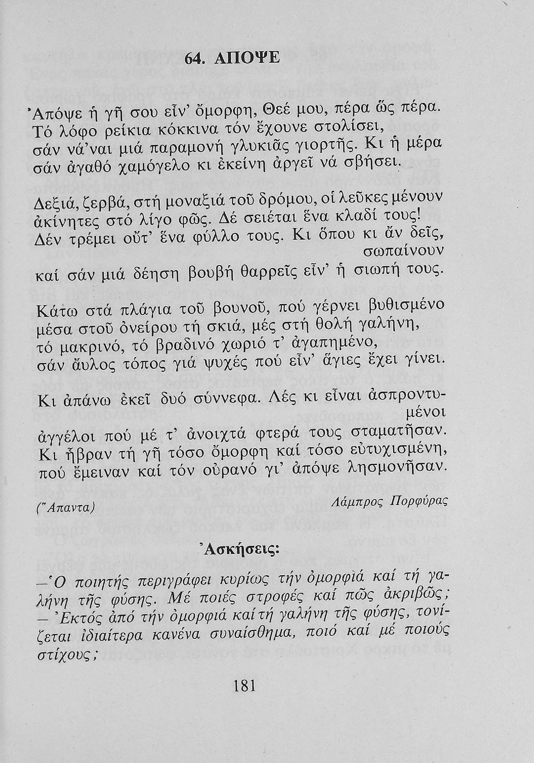 Αναγνωστικό Ε΄ Δημοτικού που περιέχει πεζά και ποιήματα εμπνευσμένα από τη θρησκευτική, εθνική, κοινωνική ζωή καθώς και από τις ασχολίες των Ελλήνων, την αρχαία και σύγχρονη ελληνική ιστορία και τον πολιτισμό.