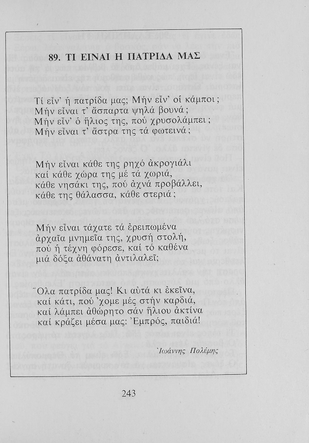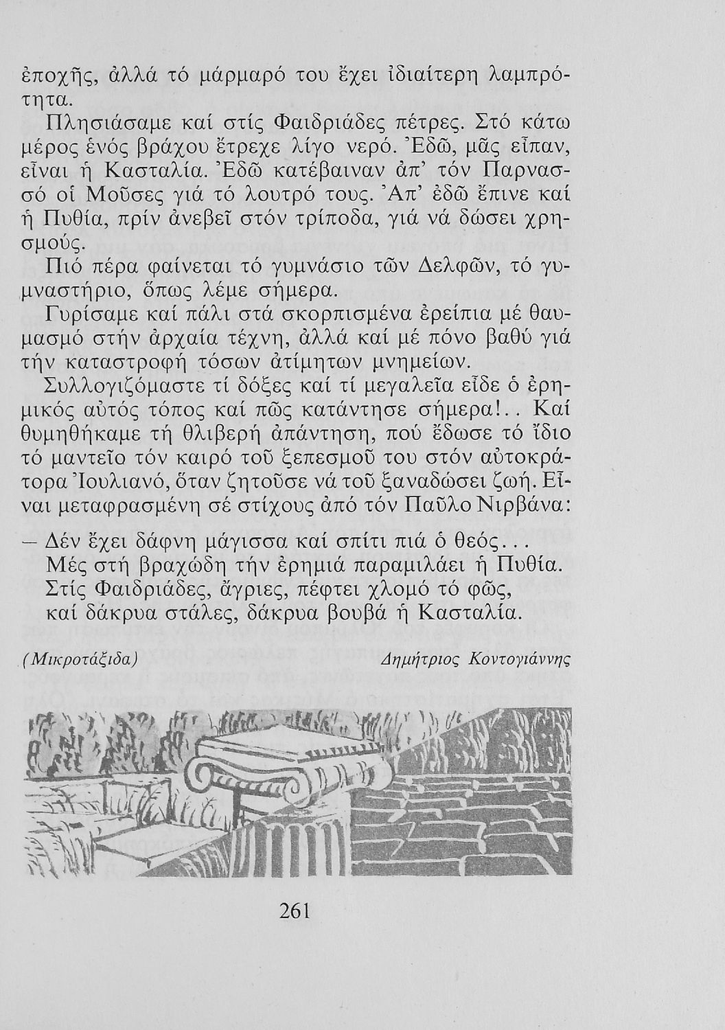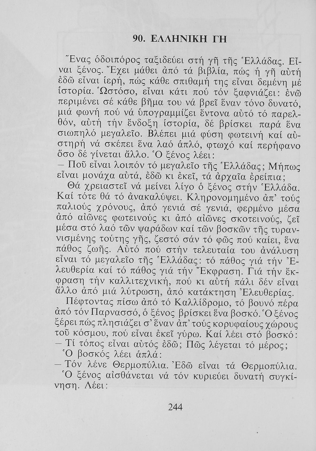 Αναγνωστικό Ε΄ Δημοτικού που περιέχει πεζά και ποιήματα εμπνευσμένα από τη θρησκευτική, εθνική, κοινωνική ζωή καθώς και από τις ασχολίες των Ελλήνων, την αρχαία και σύγχρονη ελληνική ιστορία και τον πολιτισμό.