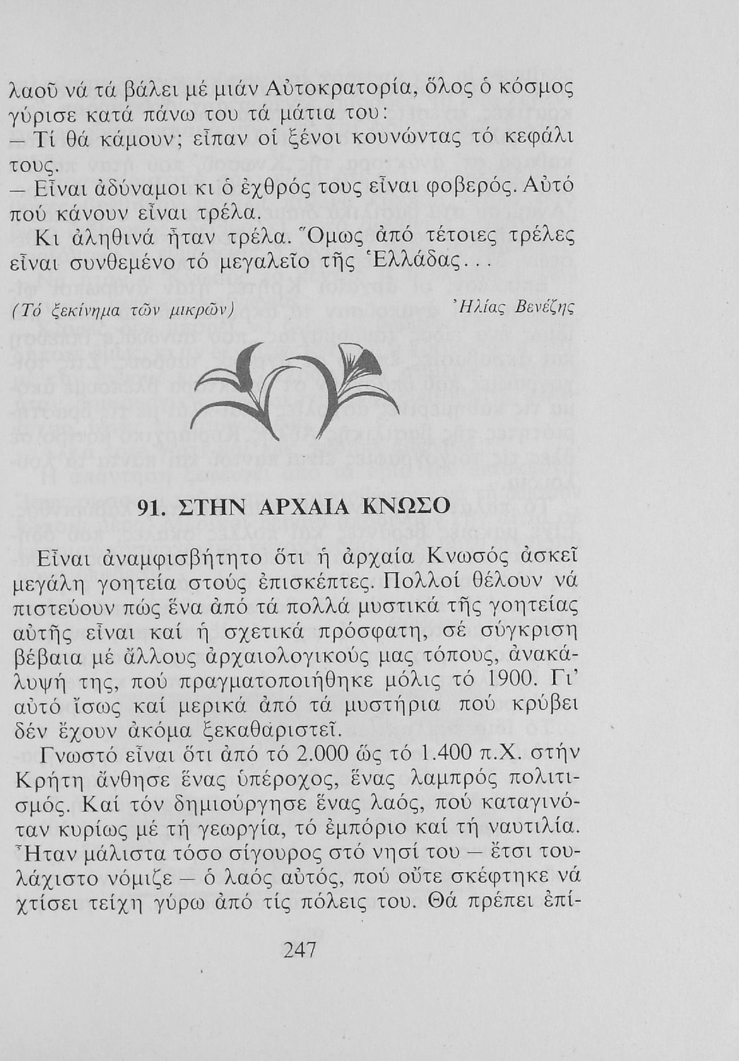 Αναγνωστικό Ε΄ Δημοτικού που περιέχει πεζά και ποιήματα εμπνευσμένα από τη θρησκευτική, εθνική, κοινωνική ζωή καθώς και από τις ασχολίες των Ελλήνων, την αρχαία και σύγχρονη ελληνική ιστορία και τον πολιτισμό. Περιλαμβάνει βιογραφίες των συγγραφέων.