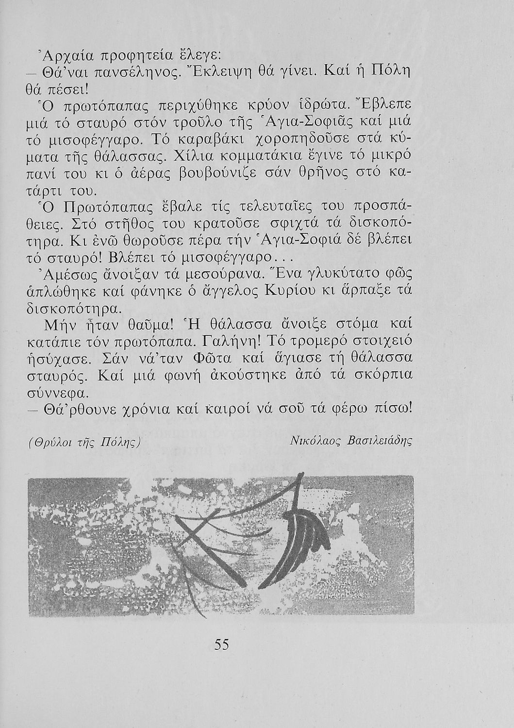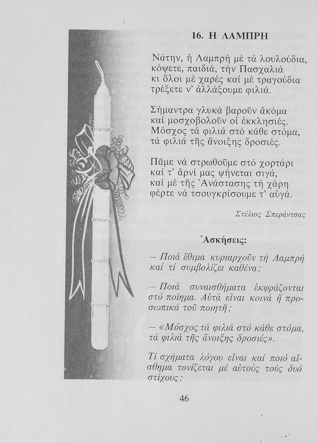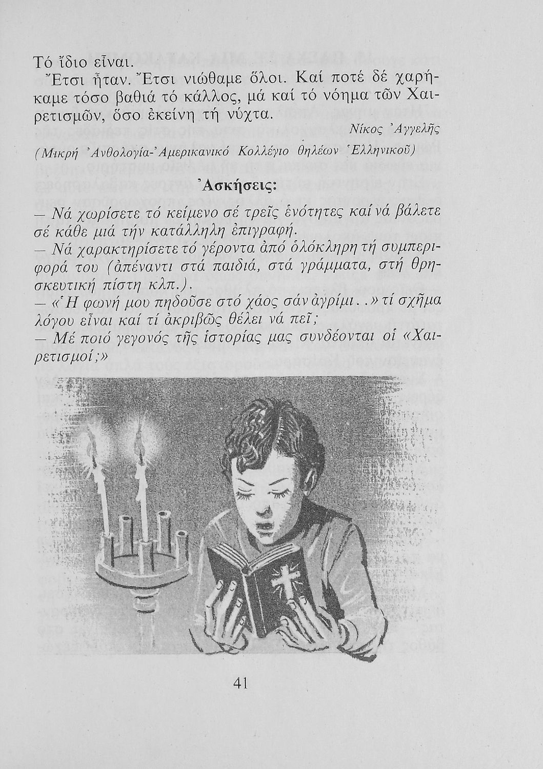 Αναγνωστικό Ε΄ Δημοτικού που περιέχει πεζά και ποιήματα εμπνευσμένα από τη θρησκευτική, εθνική, κοινωνική ζωή καθώς και από τις ασχολίες των Ελλήνων, την αρχαία και σύγχρονη ελληνική ιστορία και τον πολιτισμό. Περιλαμβάνει βιογραφίες των συγγραφέων.
