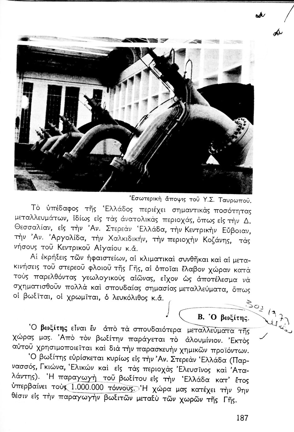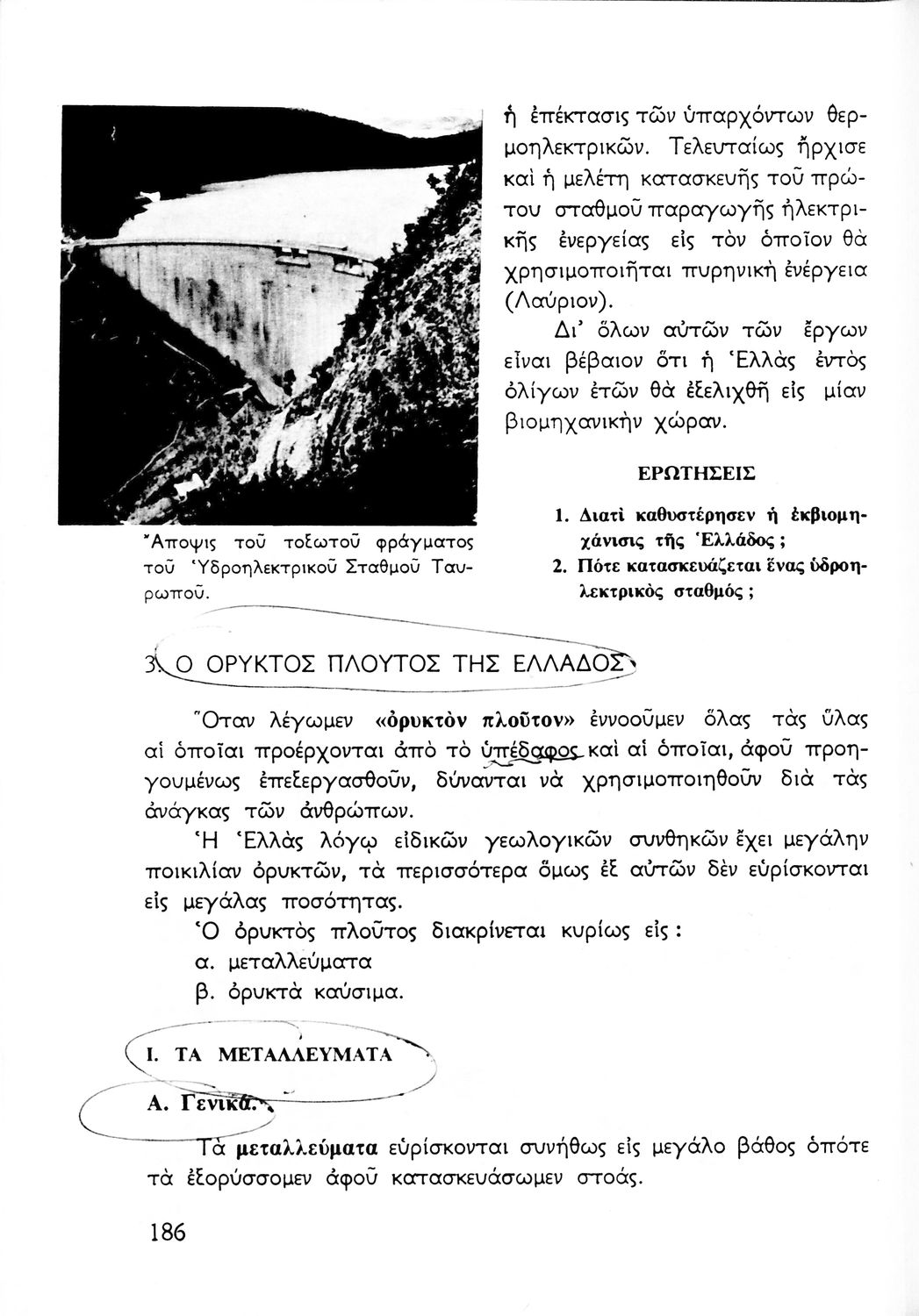 Σχολικό εγχειρίδιο Γεωγραφίας Α΄ Γυμνασίου που εξετάζει την Ελλάδα από γεωφυσική, πολιτική, οικονομική και πολιτισμική άποψη. Φέρει το σύμβολο της δικτατορίας.