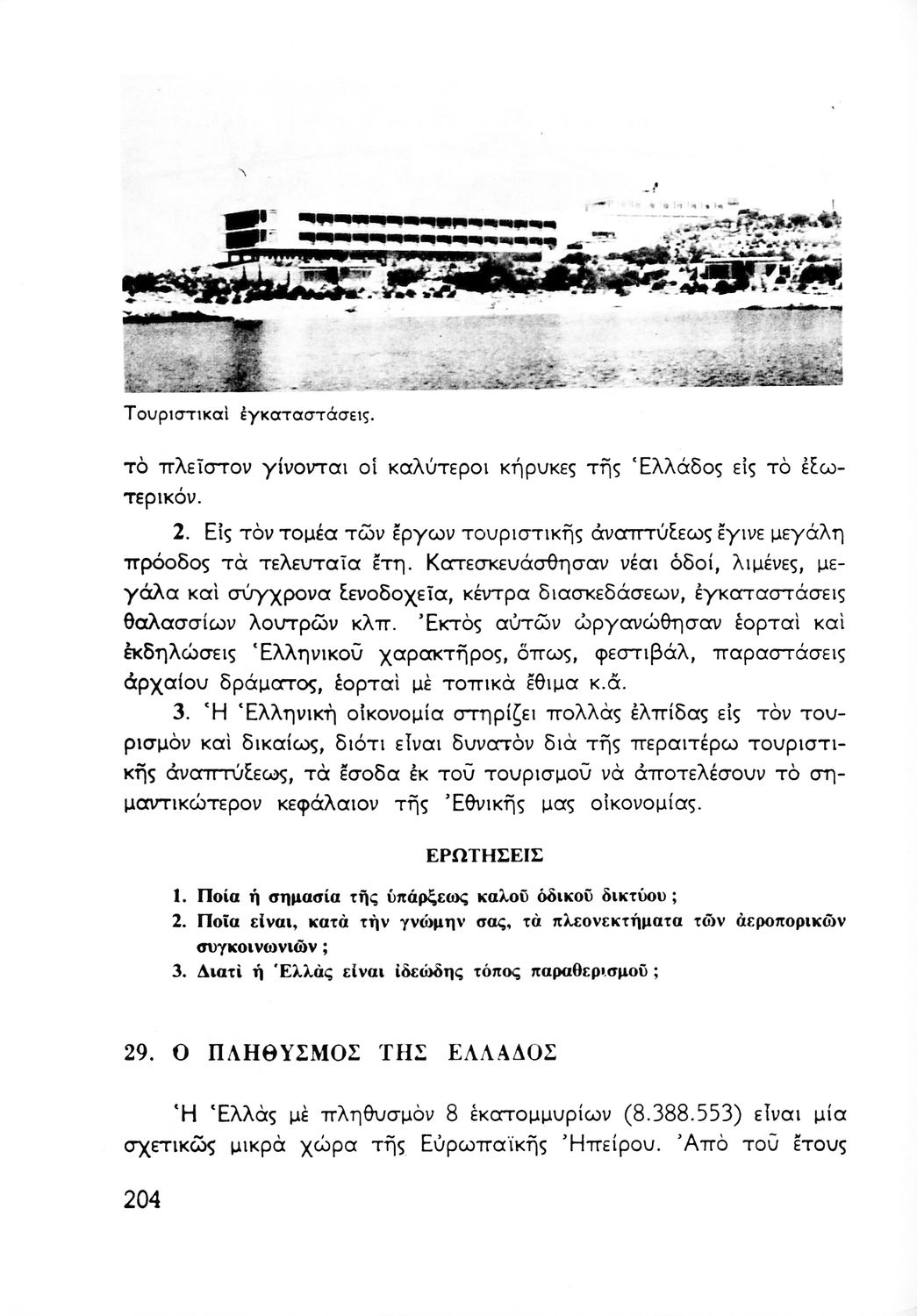 Σχολικό εγχειρίδιο Γεωγραφίας Α΄ Γυμνασίου που εξετάζει την Ελλάδα από γεωφυσική, πολιτική, οικονομική και πολιτισμική άποψη. Φέρει το σύμβολο της δικτατορίας.