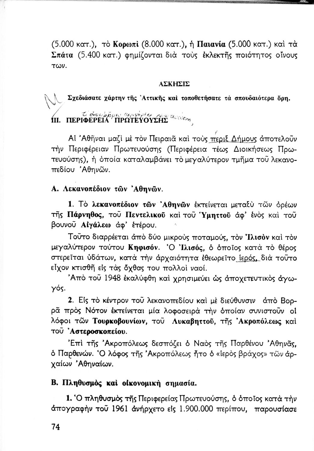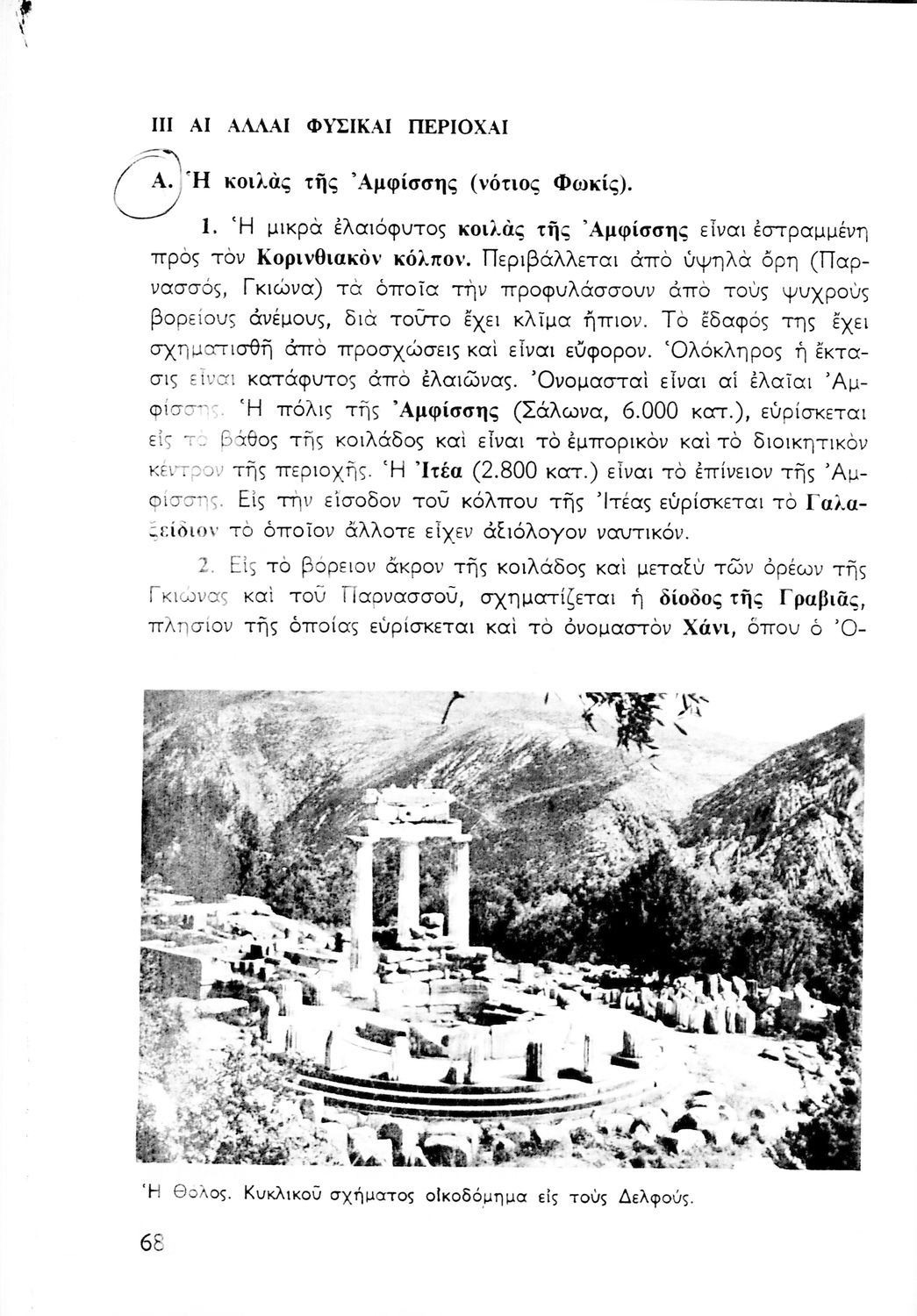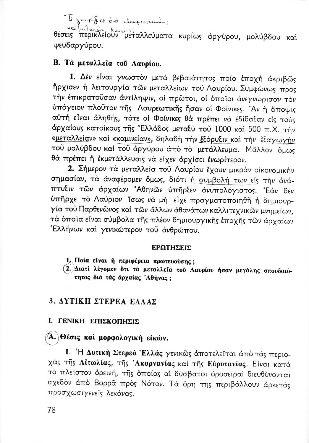 Σχολικό εγχειρίδιο Γεωγραφίας Α΄ Γυμνασίου που εξετάζει την Ελλάδα από γεωφυσική, πολιτική, οικονομική και πολιτισμική άποψη. Φέρει το σύμβολο της δικτατορίας.