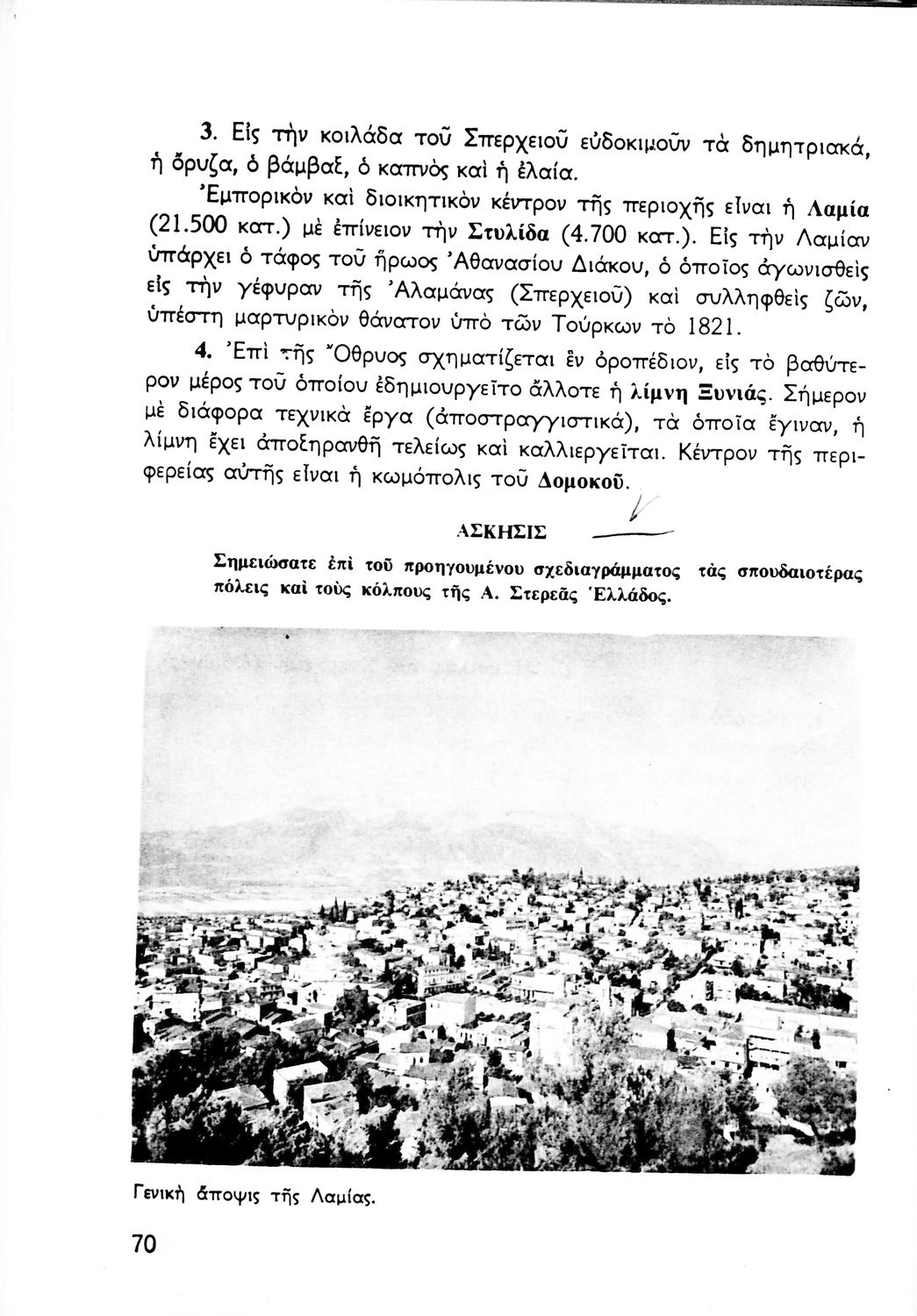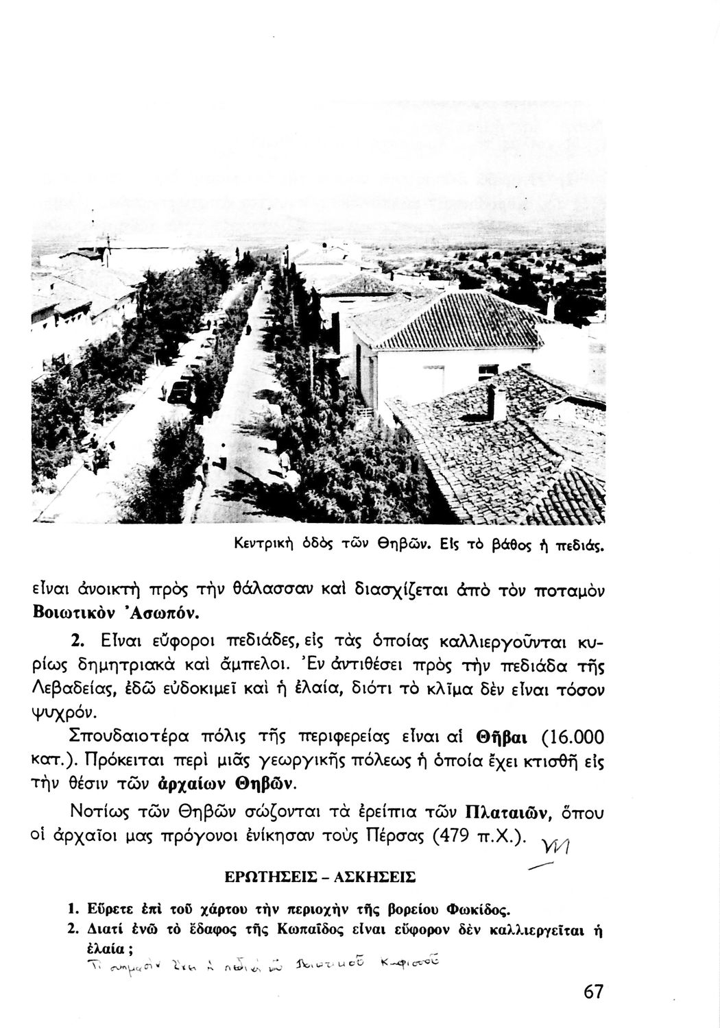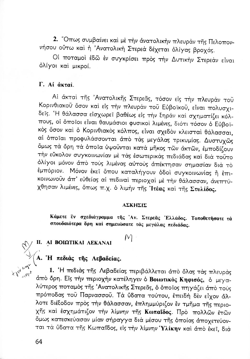 Σχολικό εγχειρίδιο Γεωγραφίας Α΄ Γυμνασίου που εξετάζει την Ελλάδα από γεωφυσική, πολιτική, οικονομική και πολιτισμική άποψη. Φέρει το σύμβολο της δικτατορίας.