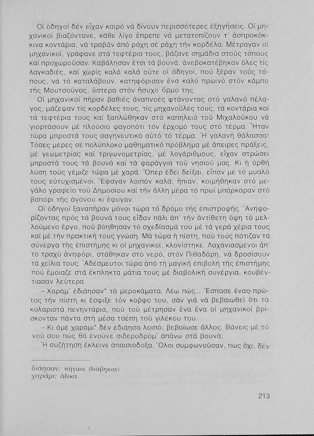 Σχολικό εγχειρίδιο Νέων Ελληνικών Β' Γυμνασίου που περιέχει δημοτικά τραγούδια, πεζά, δοκίμια και ποιήματα σύγχρονων Ελλήνων συγγραφέων και είναι χωρισμένο σε θεματικές ενότητες όπως η πόλη και η ύπαιθρος, η εποχή του 40' και η κατοχή, η θρησκευτική ζωή, ο καημός της ξενιτιάς, ο ελληνισμός έξω από τα σύνορα, οι αγώνες Ακριτών-Κλεφτών κ.α. Περιλαμβάνει και έργα ευρωπαίων λογοτεχνών.