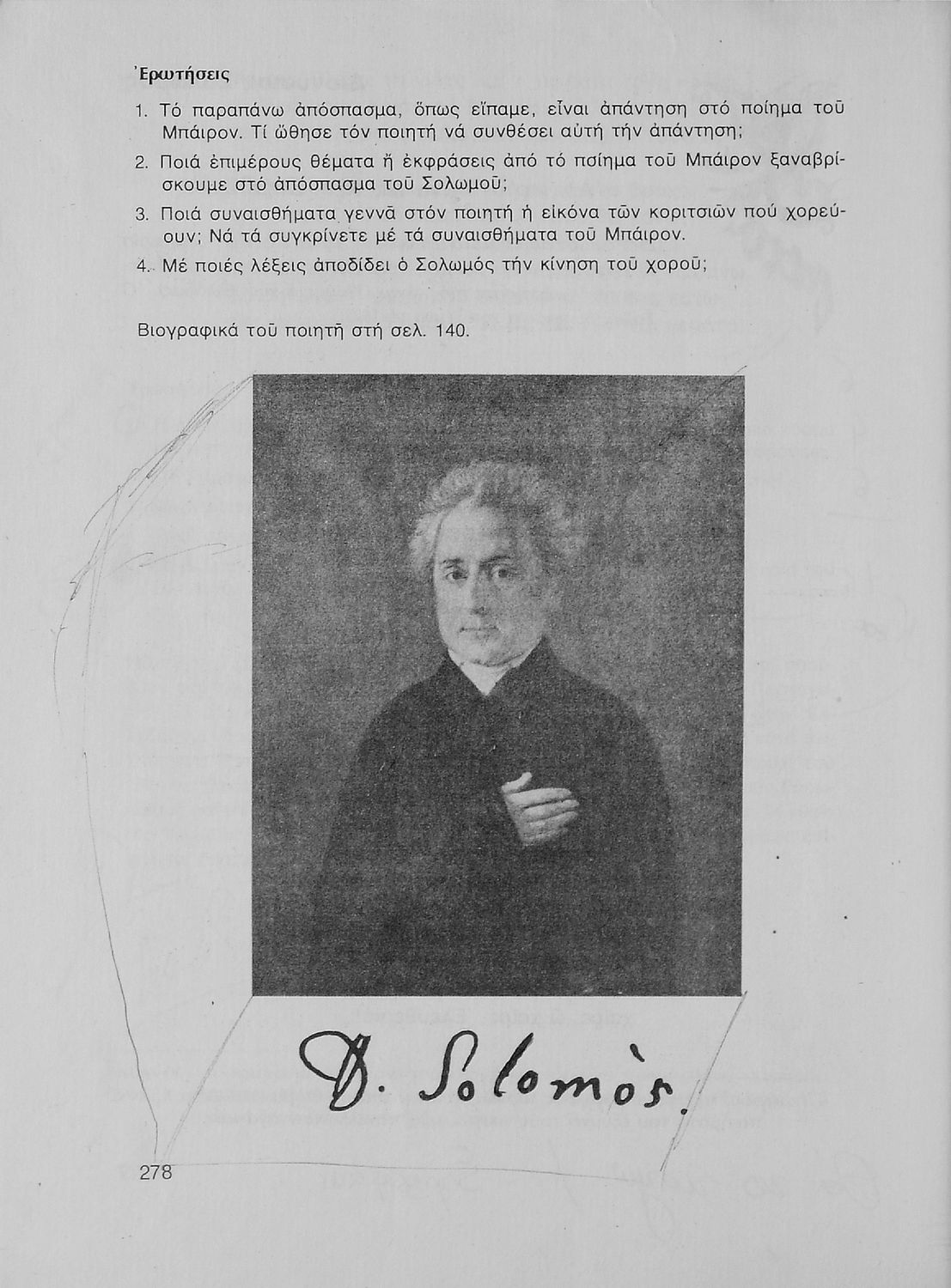 Σχολικό εγχειρίδιο Νέων Ελληνικών Β' Γυμνασίου που περιέχει δημοτικά τραγούδια, πεζά, δοκίμια και ποιήματα σύγχρονων Ελλήνων συγγραφέων και είναι χωρισμένο σε θεματικές ενότητες όπως η πόλη και η ύπαιθρος, η εποχή του 40' και η κατοχή, η θρησκευτική ζωή, ο καημός της ξενιτιάς, ο ελληνισμός έξω από τα σύνορα, οι αγώνες Ακριτών-Κλεφτών κ.α. Περιλαμβάνει και έργα ευρωπαίων λογοτεχνών.