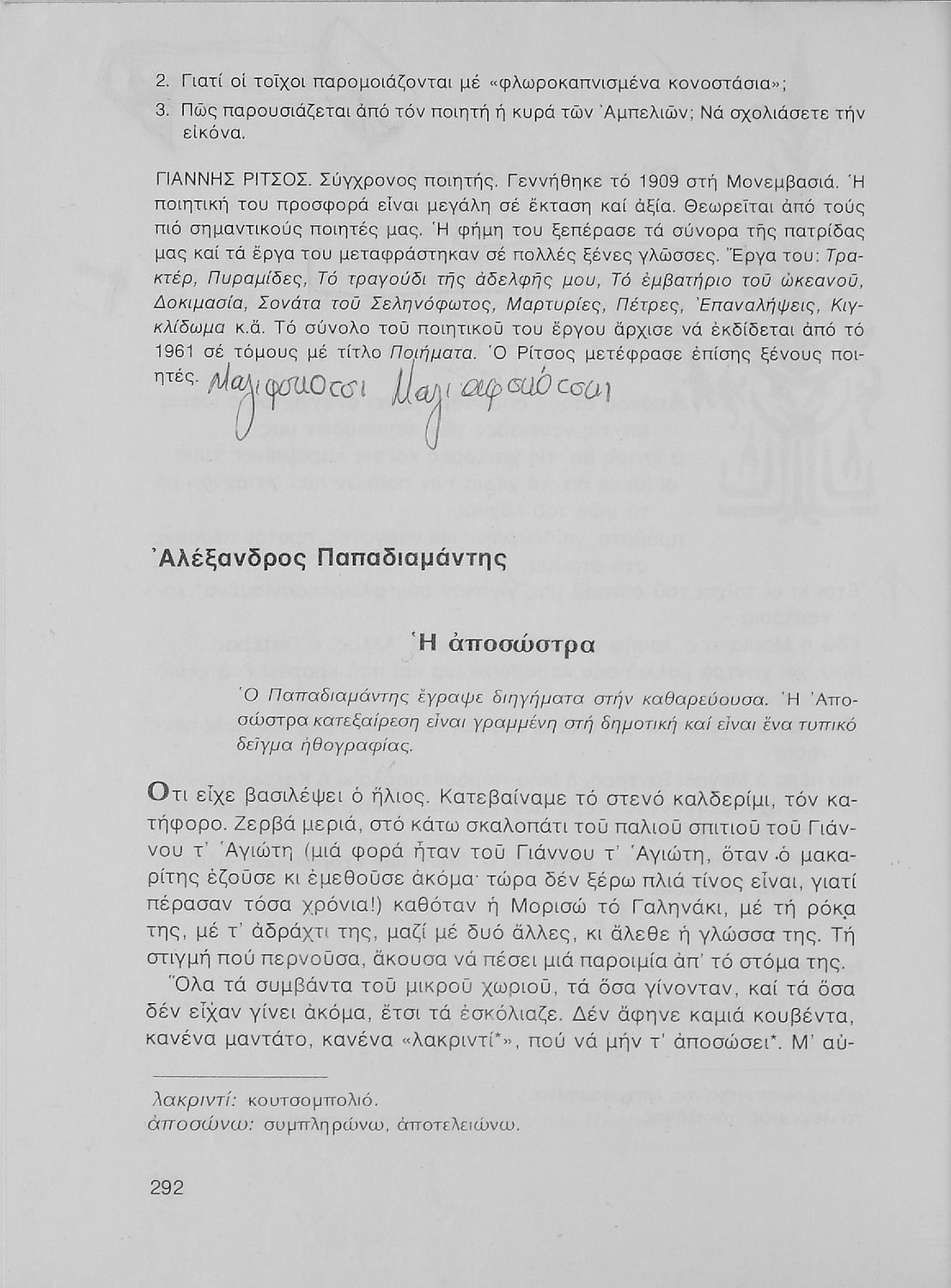 Κείμενα Νεοελληνικής Λογοτεχνίας Β΄ Γυμνασίου