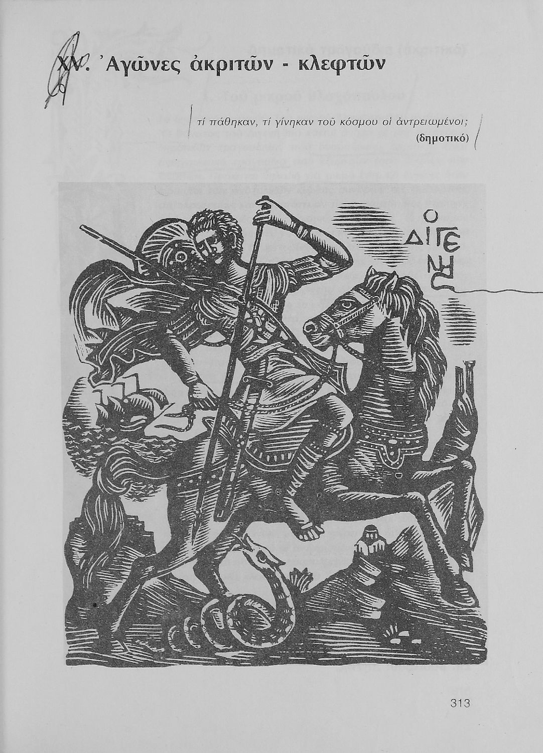 Σχολικό εγχειρίδιο Νέων Ελληνικών Α΄ Γυμνασίου που περιλαμβάνει δοκίμια, πεζά και ποιήματα Ελλήνων συγγραφέων και δημοτικά τραγούδια εμπνευσμένα από τη θρησκευτική, εθνική και κοινωνική ζωή, τη "δοκιμασία της ...