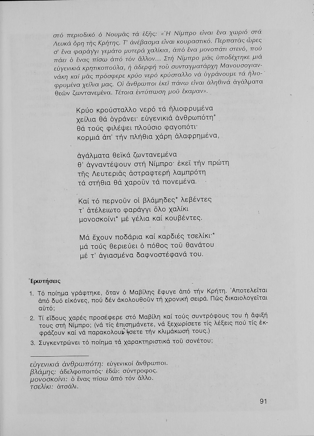 Κείμενα Νεοελληνικής Λογοτεχνίας Β΄ Γυμνασίου
