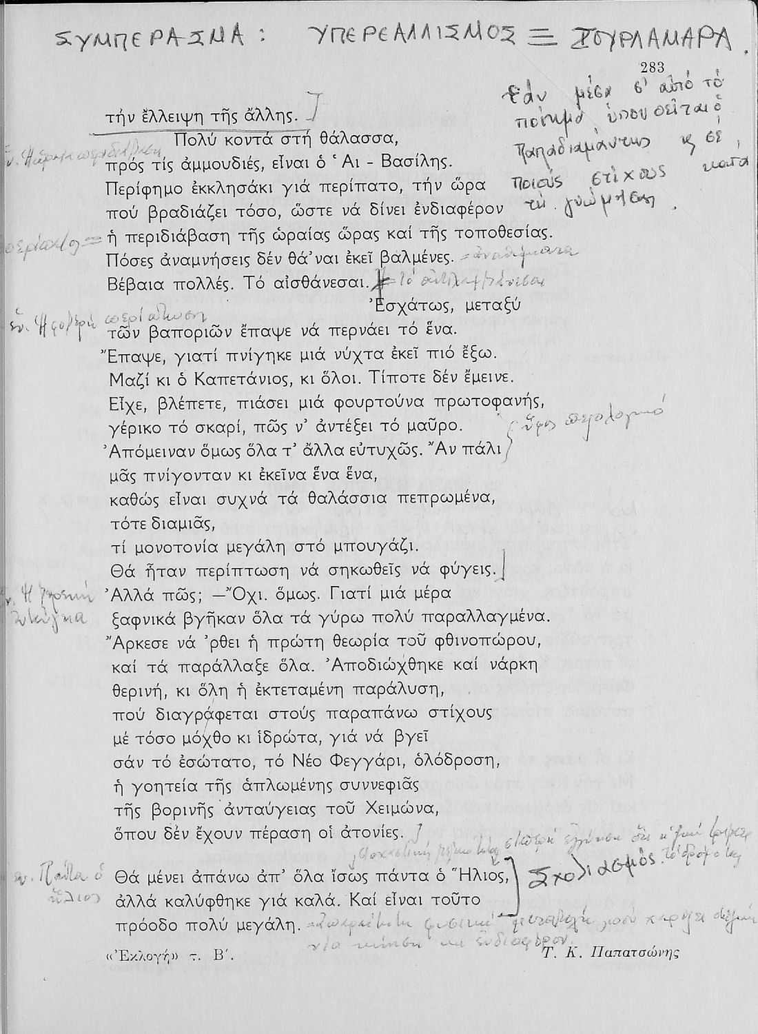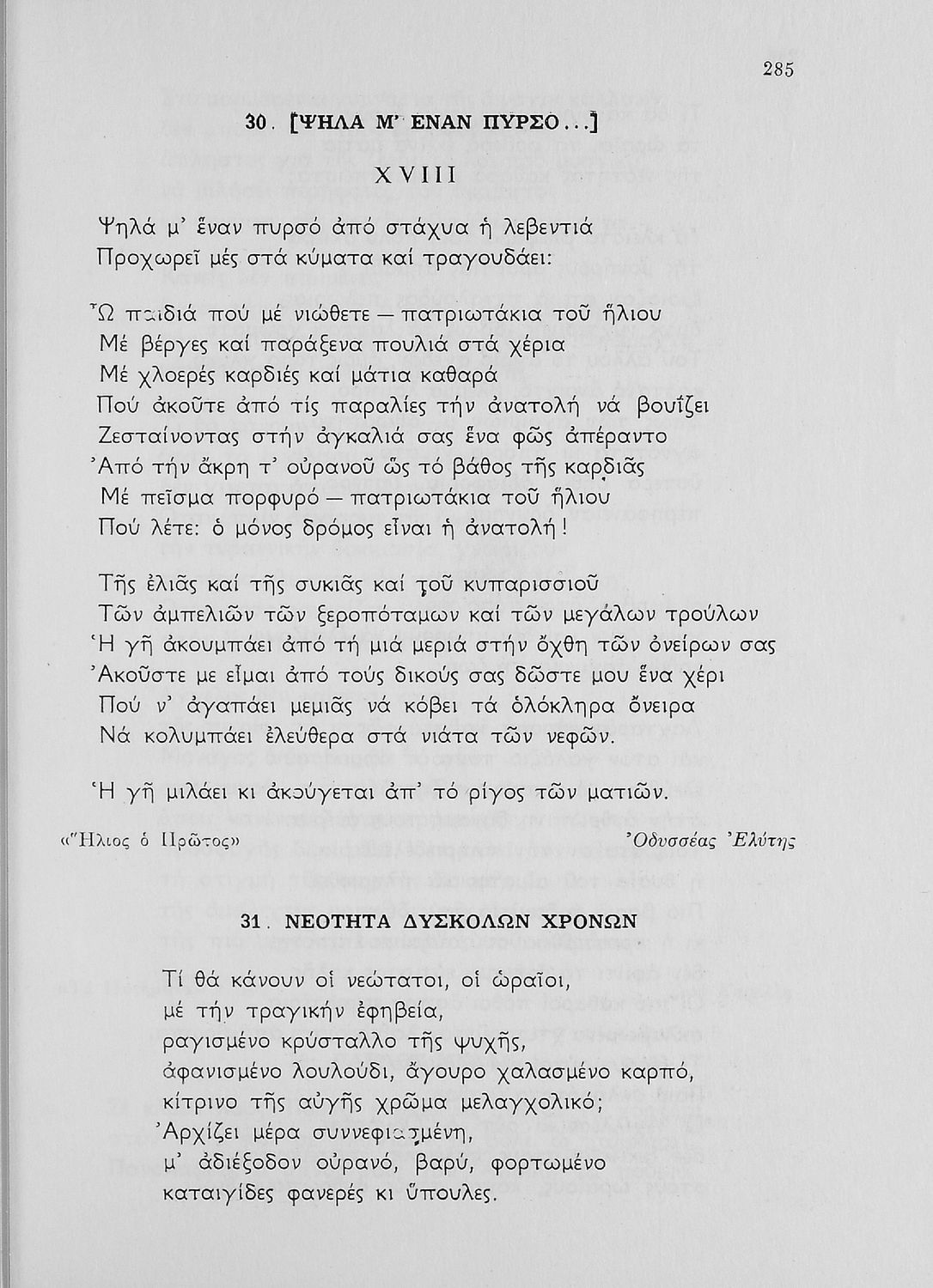 Σχετιζόμενοι όροι:  Παλαμάς, Σεφέρης, Καβάφης, Σικελιανός