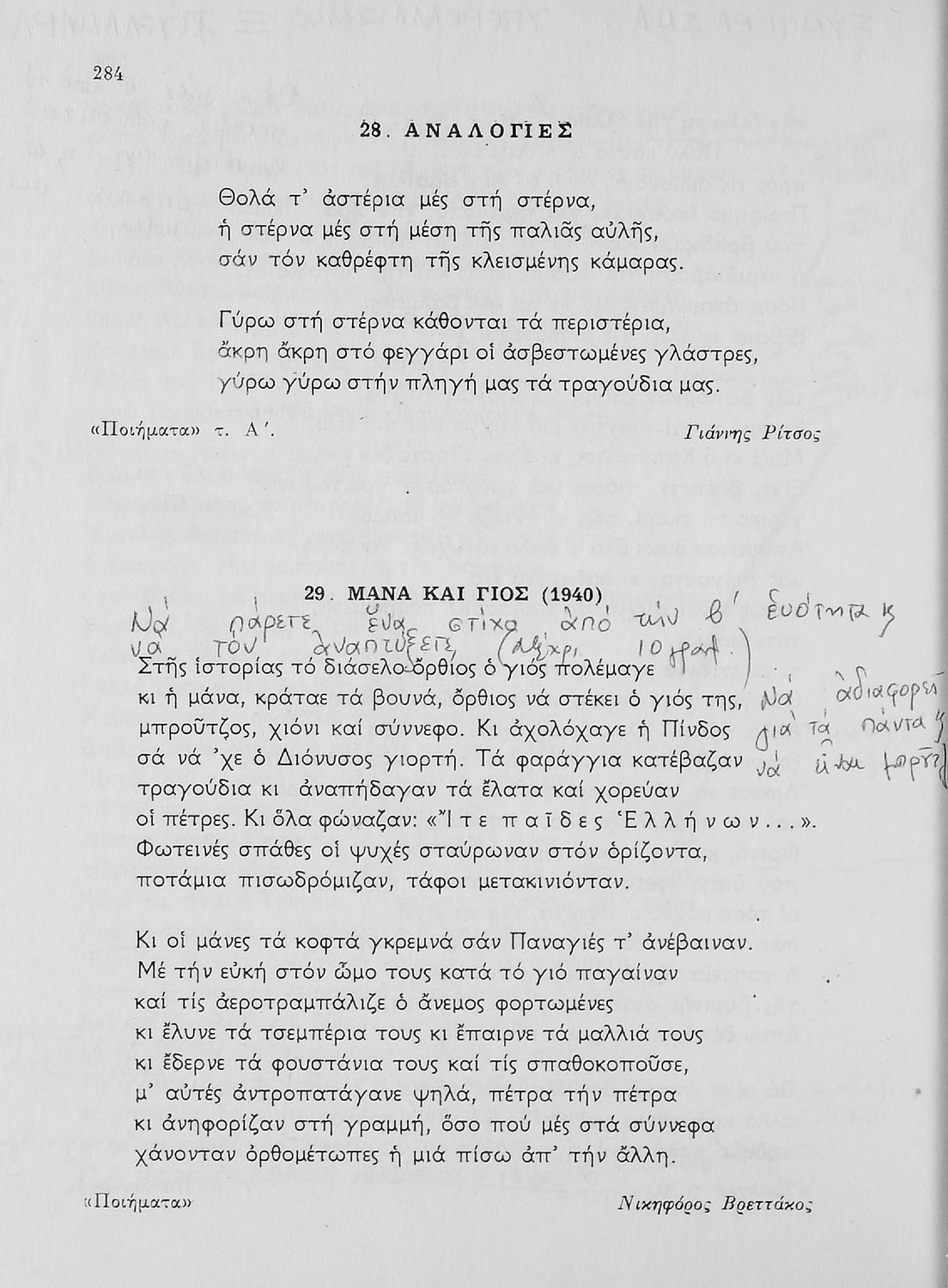 Σχολικό εγχειρίδιο Νέων Ελληνικών Β΄ Γυμνασίου που περιέχει πεζά και ποιήματα Ελλήνων συγγραφέων εμπνευσμένα από την κοινωνική και καθημερινή ζωή, την σύγχρονη ελληνική ιστορία, την αρχαία ελληνική ιστορία και