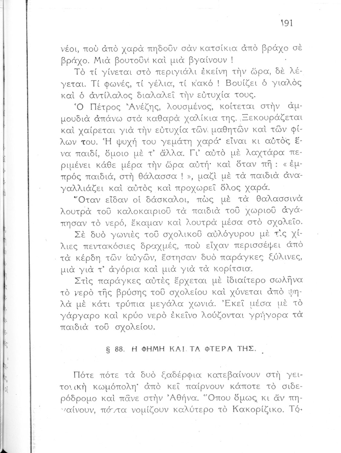 Αναγνωστικό για την Δ΄ τάξη του Δημοτικού. Περιλαμβάνει ένα κείμενο στο οποίο παρεμβάλλονται ποιήματα δημοτικά και Ελλήνων ποιητών.