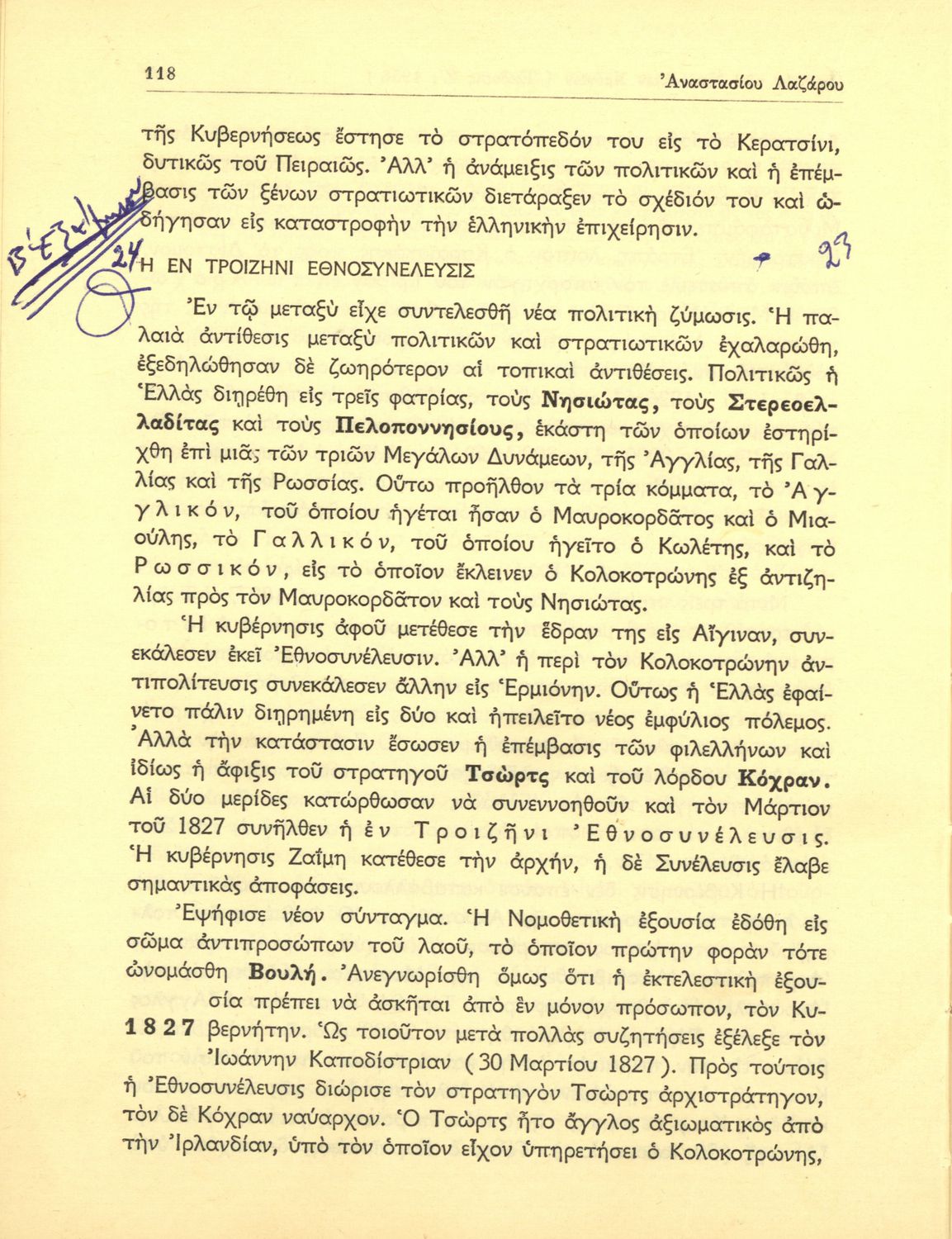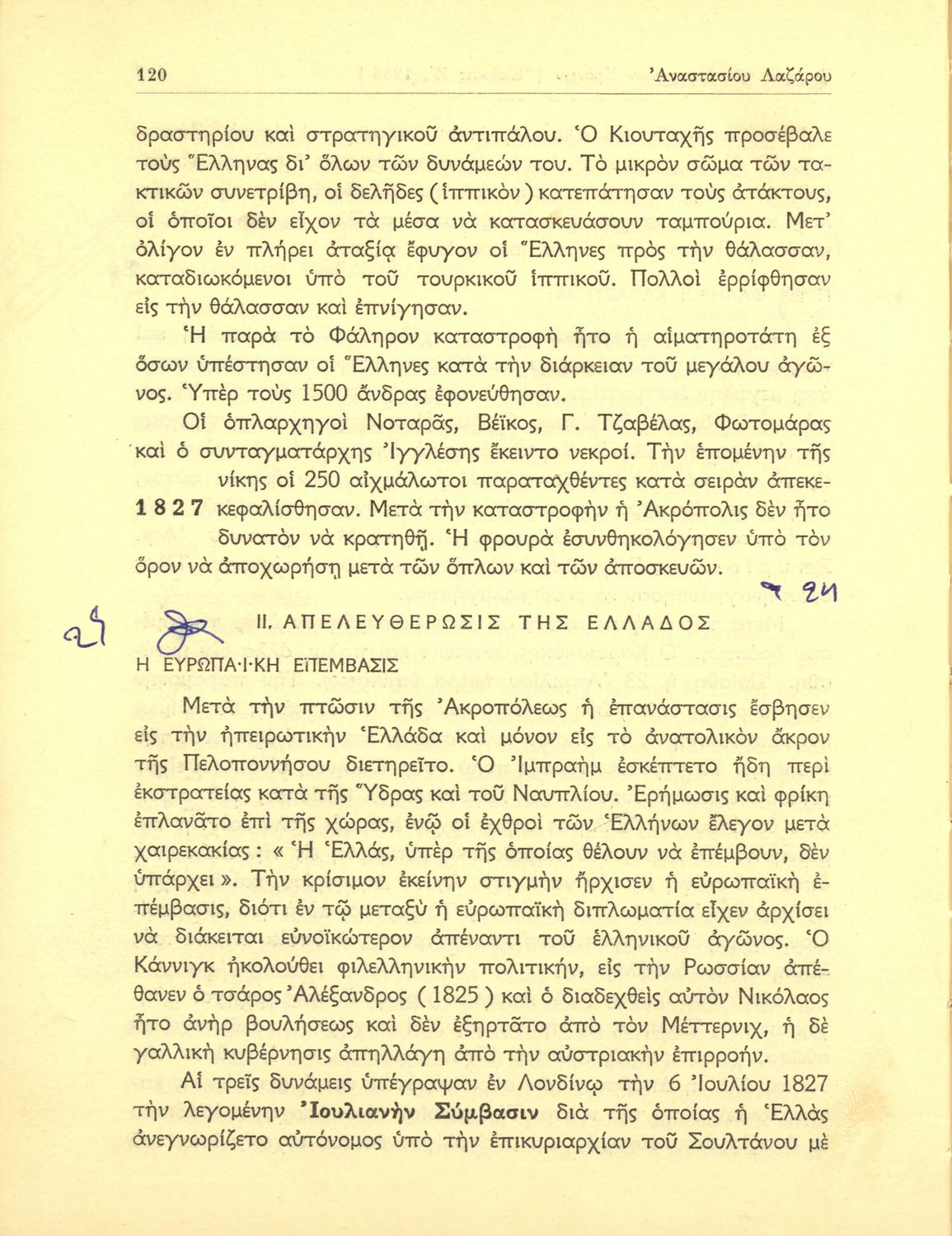 Κωδικός αναγνώρισης: 01-42143 Τίτλος: Ιστορία των νεώτατων χρόνων από της συνθήκης της Βιέννης (1815) μέχρι των ημερών μας δια την ΣΤ΄ τάξιν των Γυμνασίων Συγγραφέας: Αναστάσιος Λαζάρου Εικονογράφος: Γεώργιος Λυδάκης Μέγεθος και υπόστρωμα: Σχολικό εγχειρίδιο, 20εκ., σκληρό εξώφυλλο, 316 σελίδες. Σκίτσα (ασπρόμαυρα). |