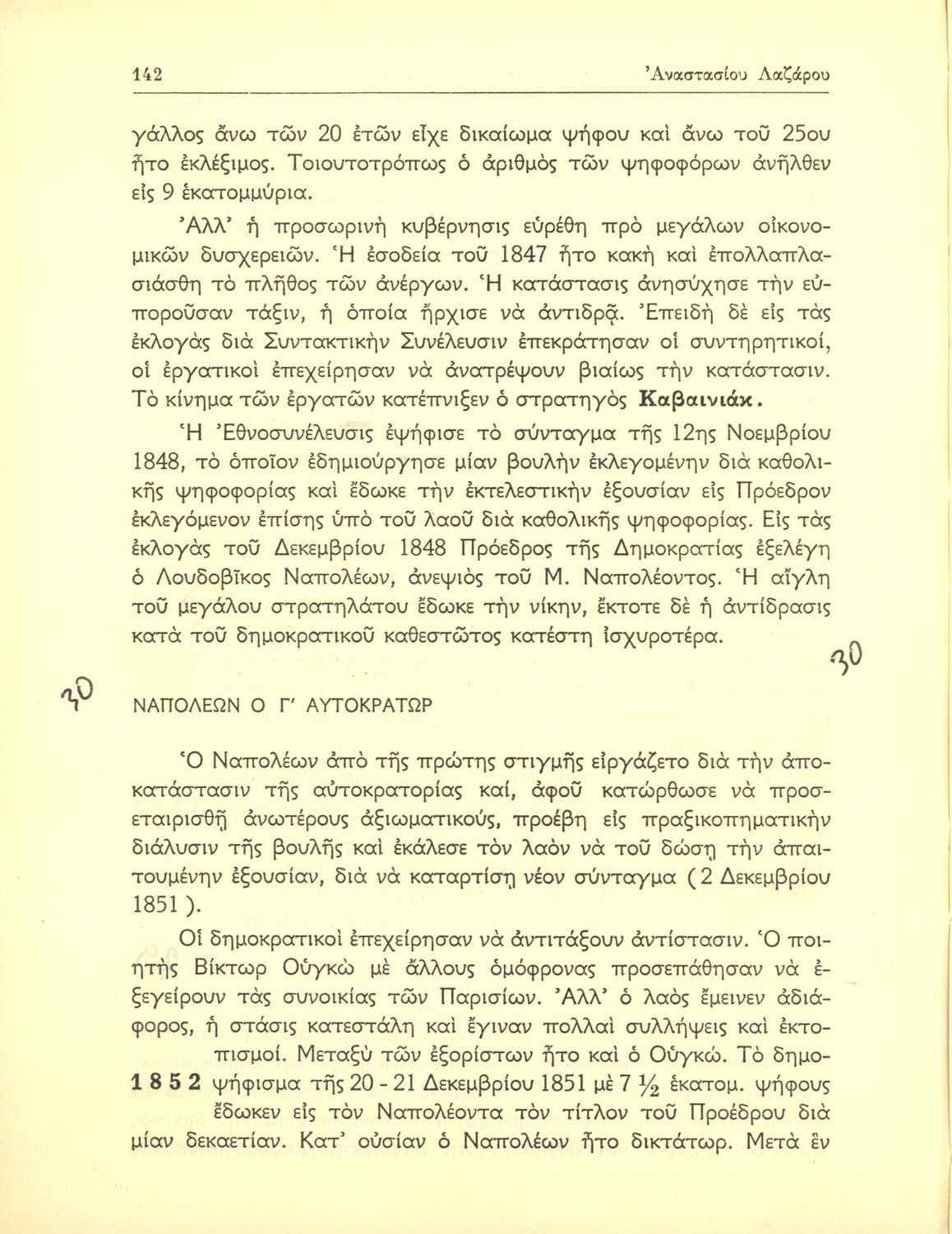 Κωδικός αναγνώρισης: 01-42143 Τίτλος: Ιστορία των νεώτατων χρόνων από της συνθήκης της Βιέννης (1815) μέχρι των ημερών μας δια την ΣΤ΄ τάξιν των Γυμνασίων Συγγραφέας: Αναστάσιος Λαζάρου Εικονογράφος: Γεώργιος Λυδάκης Μέγεθος και υπόστρωμα: Σχολικό εγχειρίδιο, 20εκ., σκληρό εξώφυλλο, 316 σελίδες. Σκίτσα (ασπρόμαυρα). |
