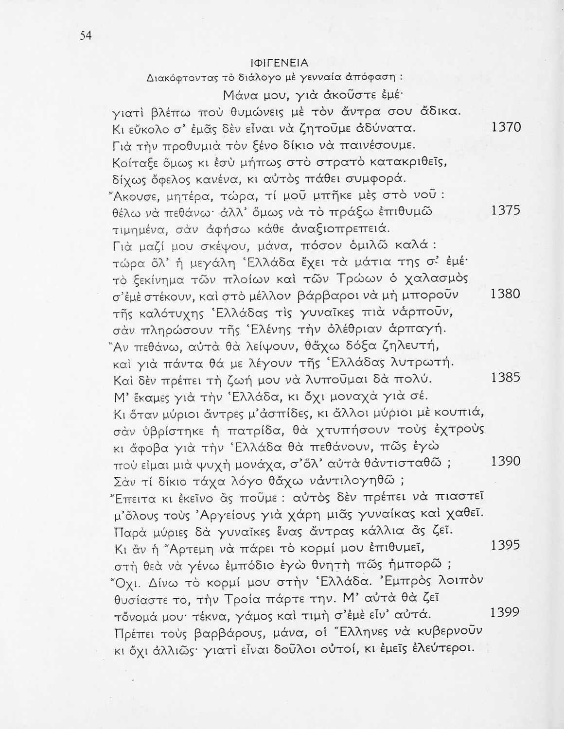 Σχολικό εγχειρίδιο Αρχαίων Ελληνικών Ε΄ Γυμνασίου που περιέχει εισαγωγή στο αρχαίο δράμα και στη ζωή και το έργο του Ευριπίδη, αποσπάσματα από την Ιφιγένεια η εν Αυλίδι και ερμηνευτικά σχόλια. Φέρει το σύμβολο