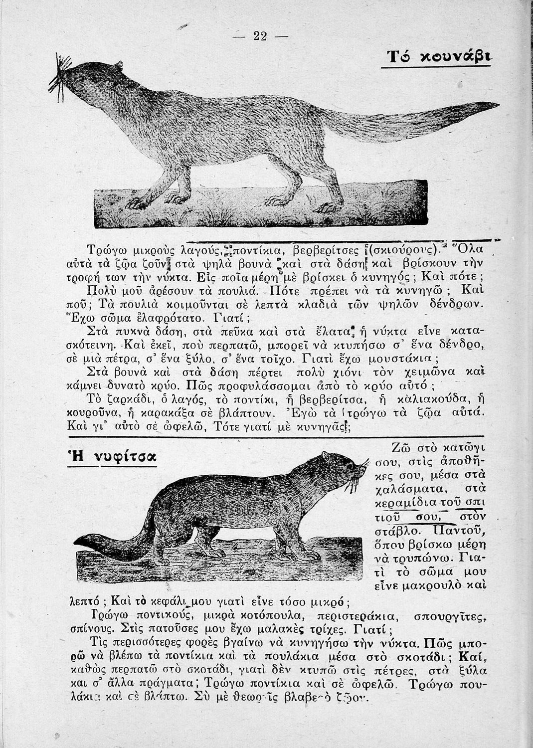 Σχολικό εγχειρίδιο Ζωολογίας και Φυτολογίας για την Γ΄ Δημοτικού που περιγράφει διάφορα ζώα και φυτά με λογοτεχνική αφήγηση και παιγνιώδη διάθεση.