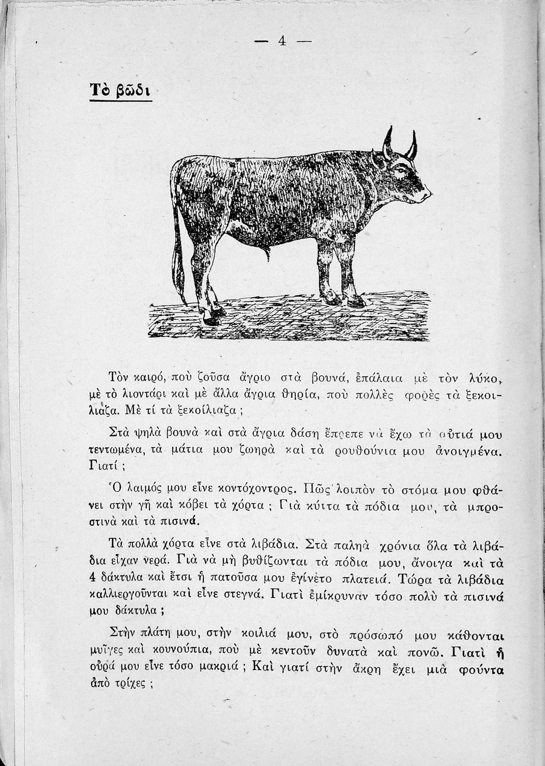 Παρουσίαση περιεχομένου: Σχολικό εγχειρίδιο Ζωολογίας και Φυτολογίας για την Δ΄ Δημοτικού που περιγράφει διάφορα ζώα και φυτά με λογοτεχνική αφήγηση και παιγνιώδη διάθεση.
