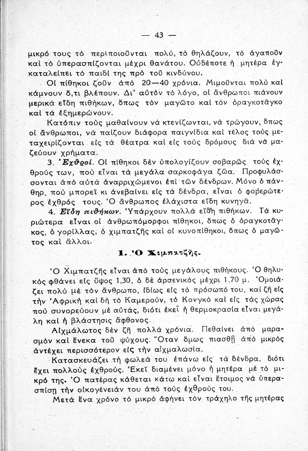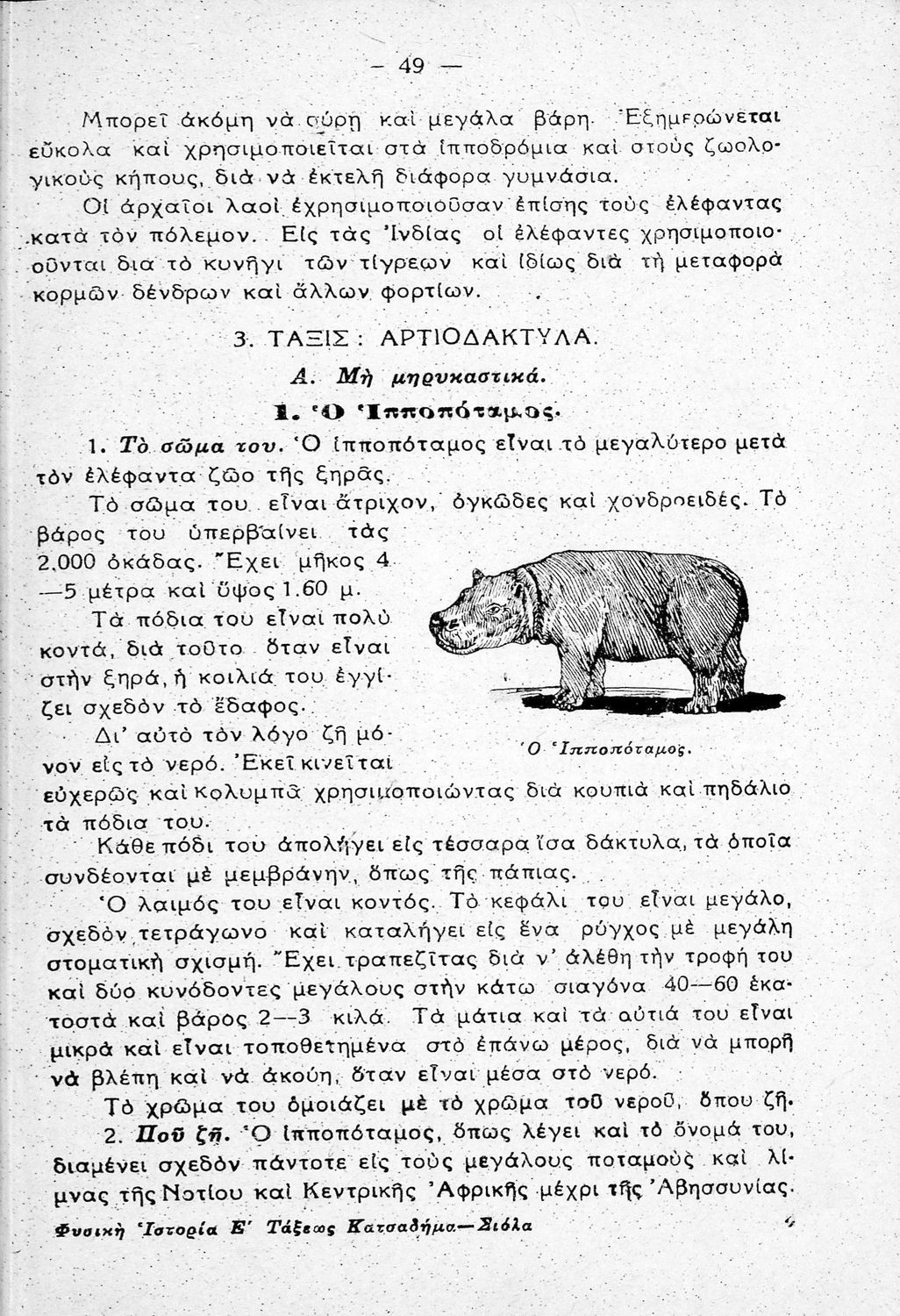 Σχολικό εγχειρίδιο Φυσικής Ιστορίας της Α' Τάξης των Γυμνασίων και Ημιγυμνασίων. Το βιβλίο χωρίζεται σε τρία κεφάλαια: ζωολογία, ορυκτολογία, φυτολογία.