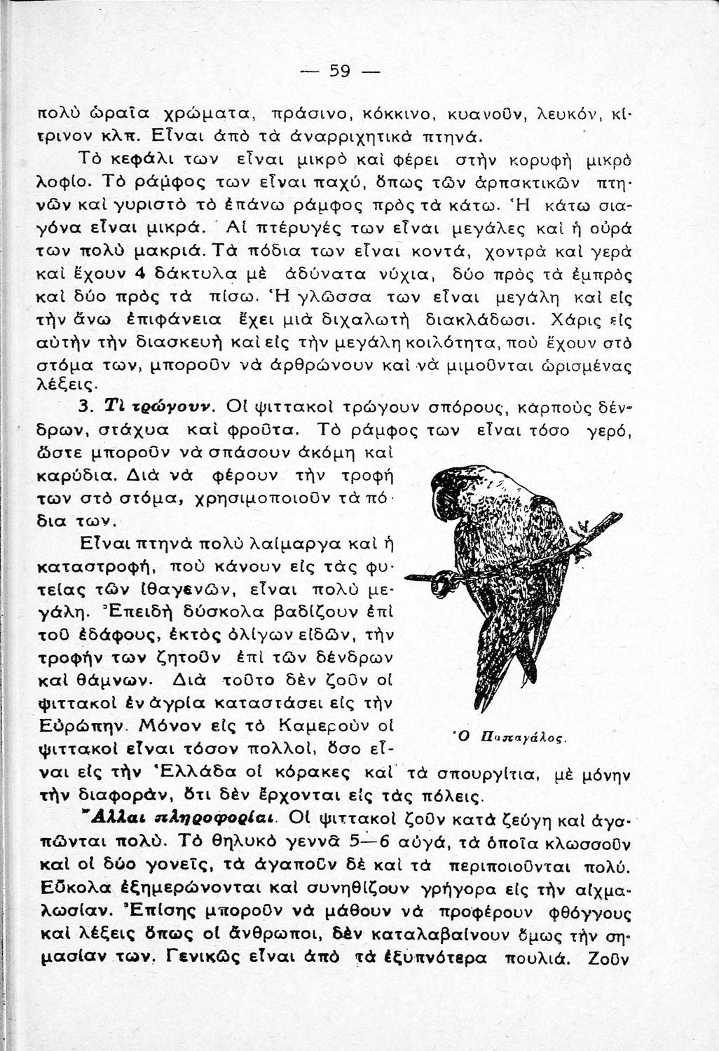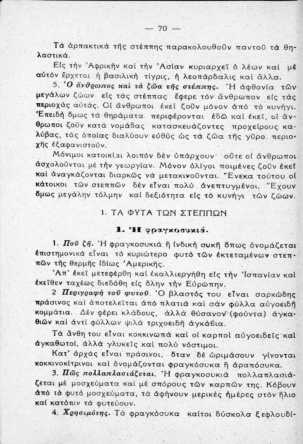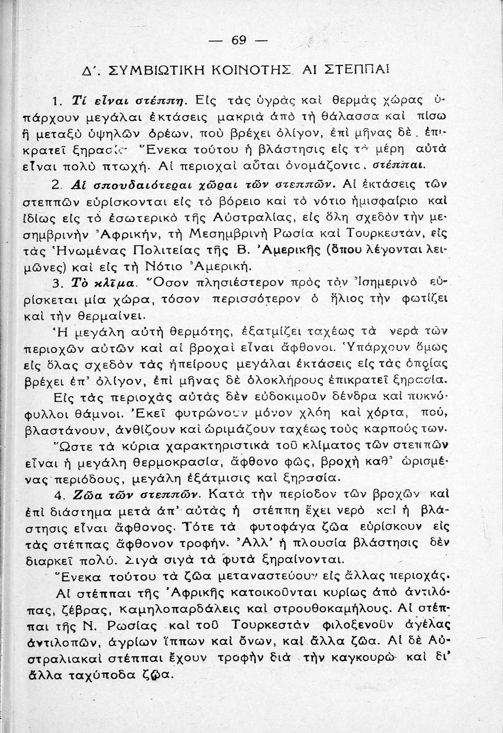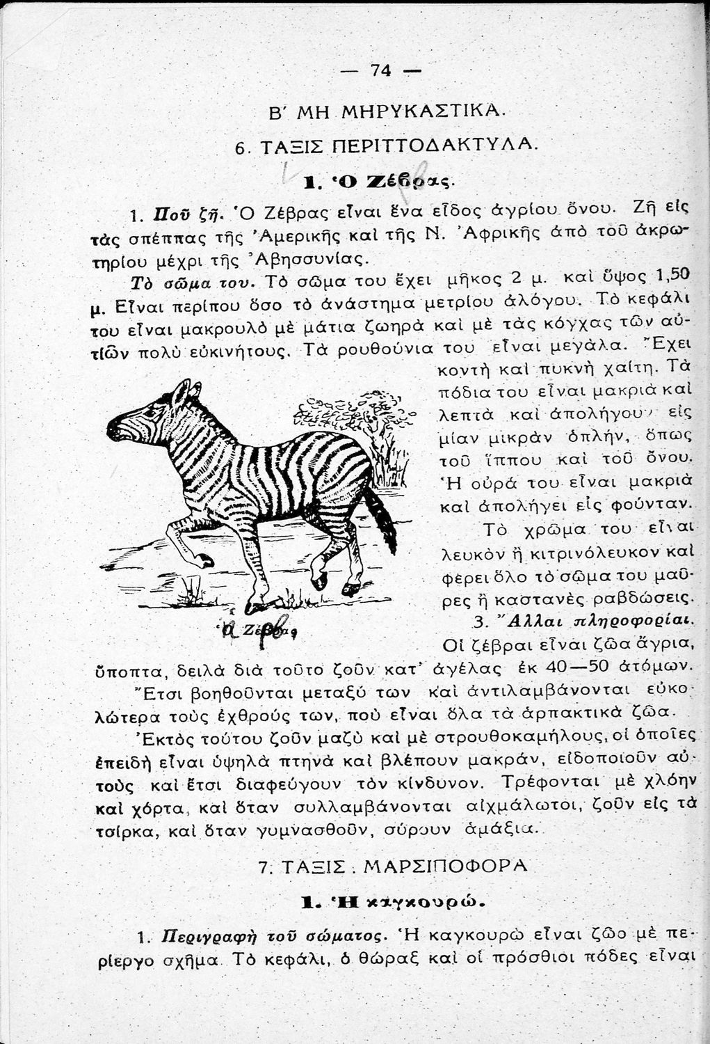 Σχολικό εγχειρίδιο Φυσικής Ιστορίας της Α' Τάξης των Γυμνασίων και Ημιγυμνασίων. Το βιβλίο χωρίζεται σε τρία κεφάλαια: ζωολογία, ορυκτολογία, φυτολογία.