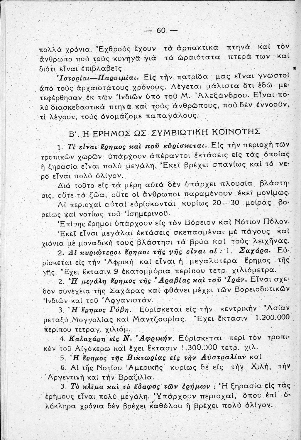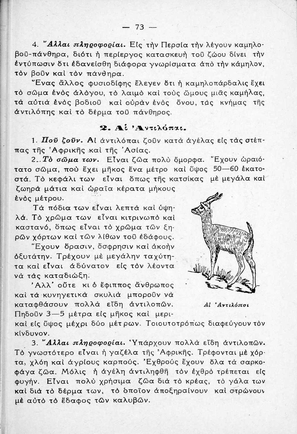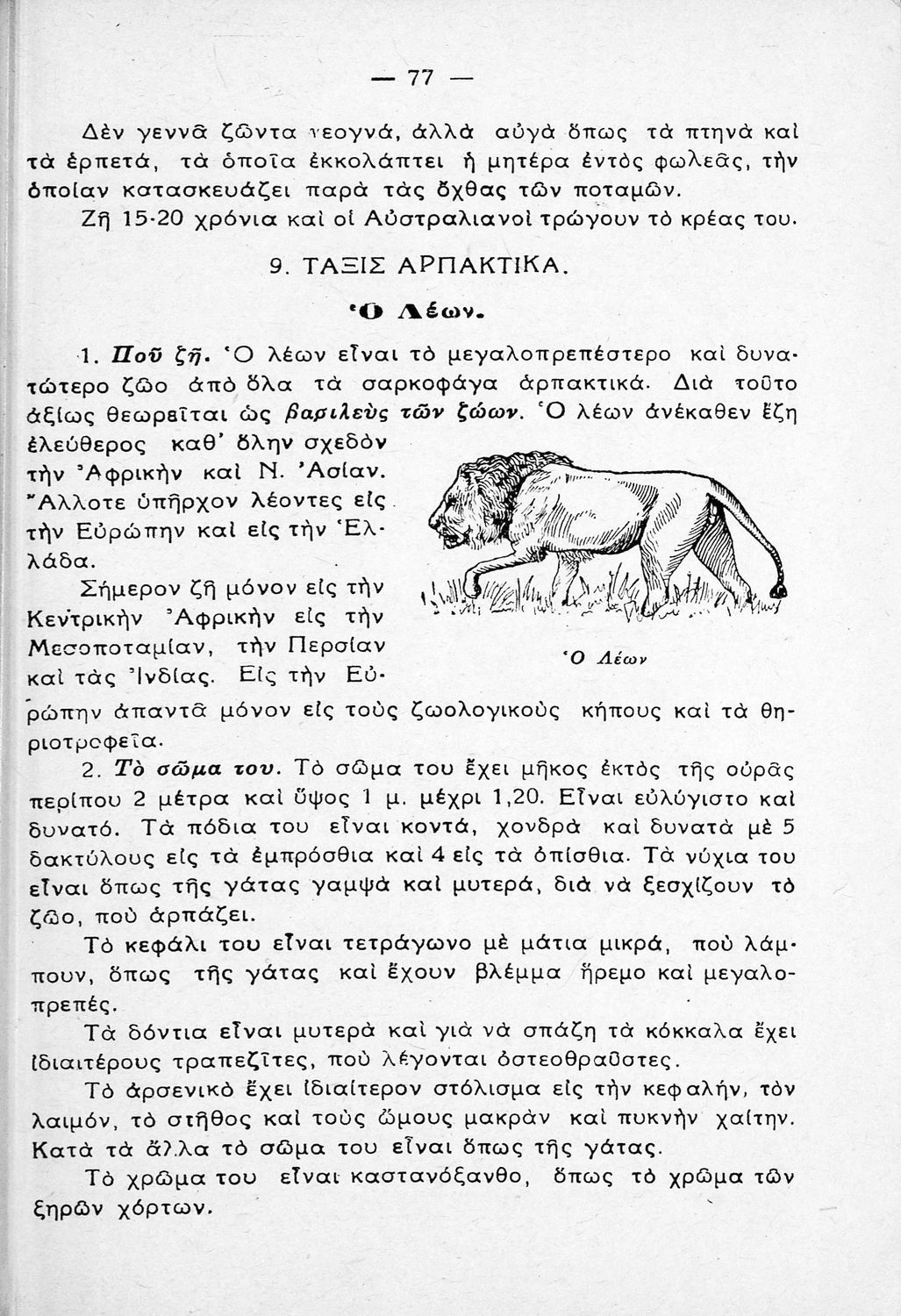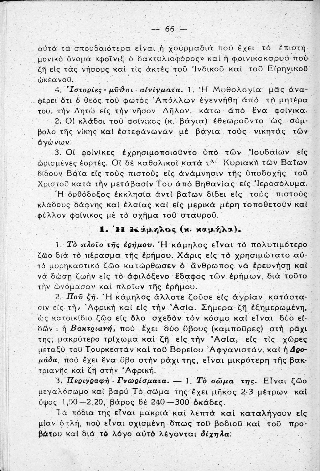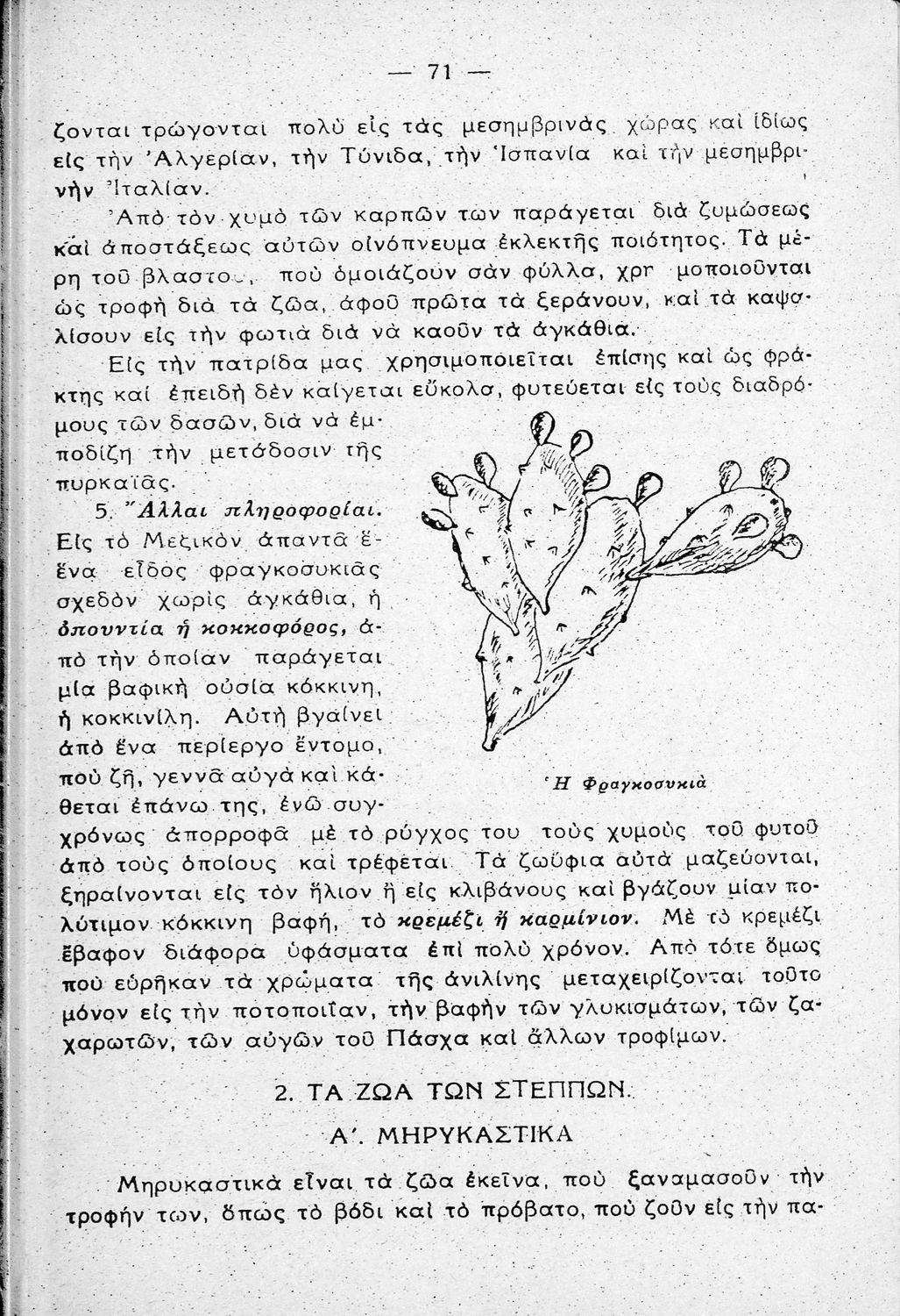 Σχολικό εγχειρίδιο Φυσικής Ιστορίας της Α' Τάξης των Γυμνασίων και Ημιγυμνασίων. Το βιβλίο χωρίζεται σε τρία κεφάλαια: ζωολογία, ορυκτολογία, φυτολογία.