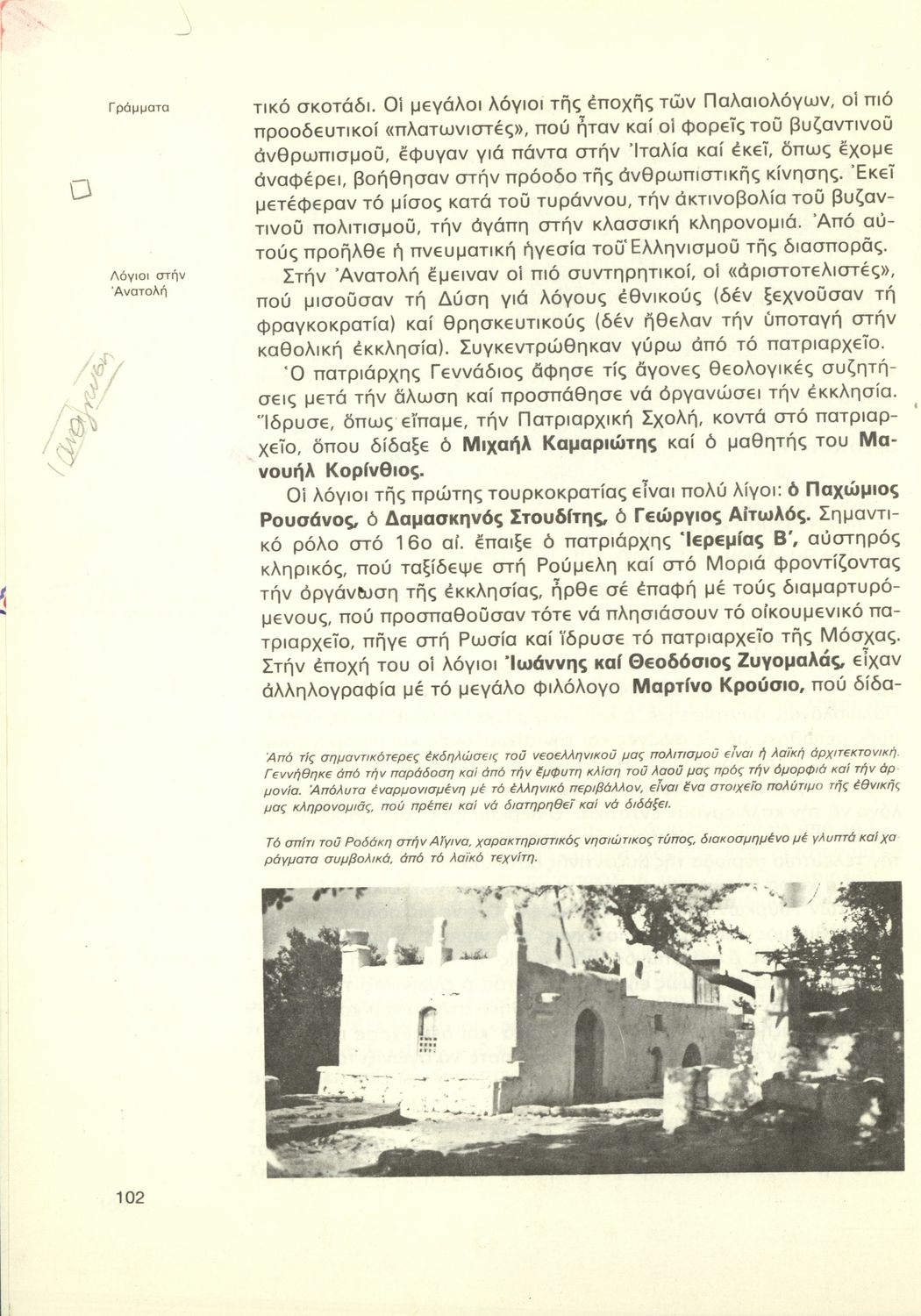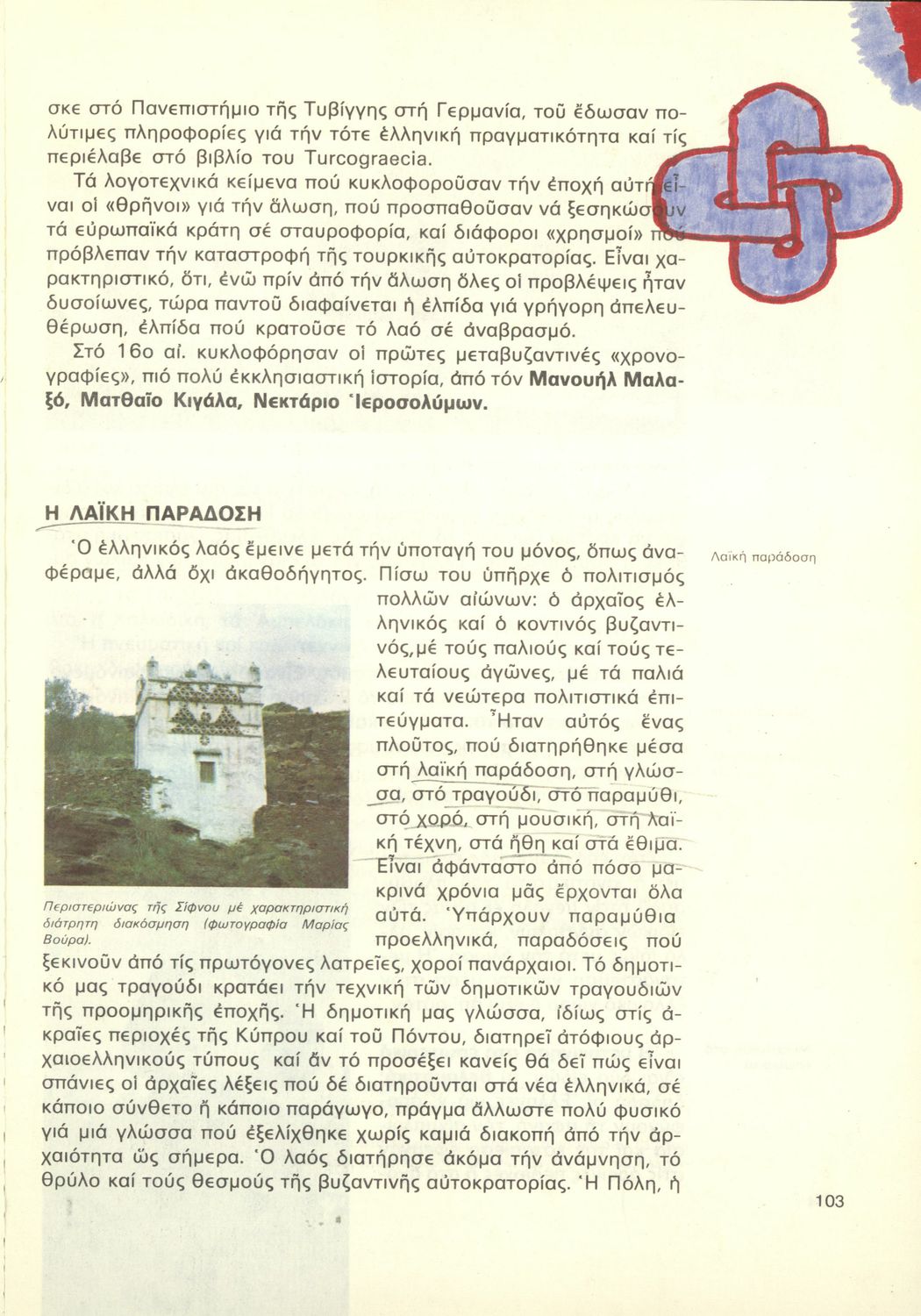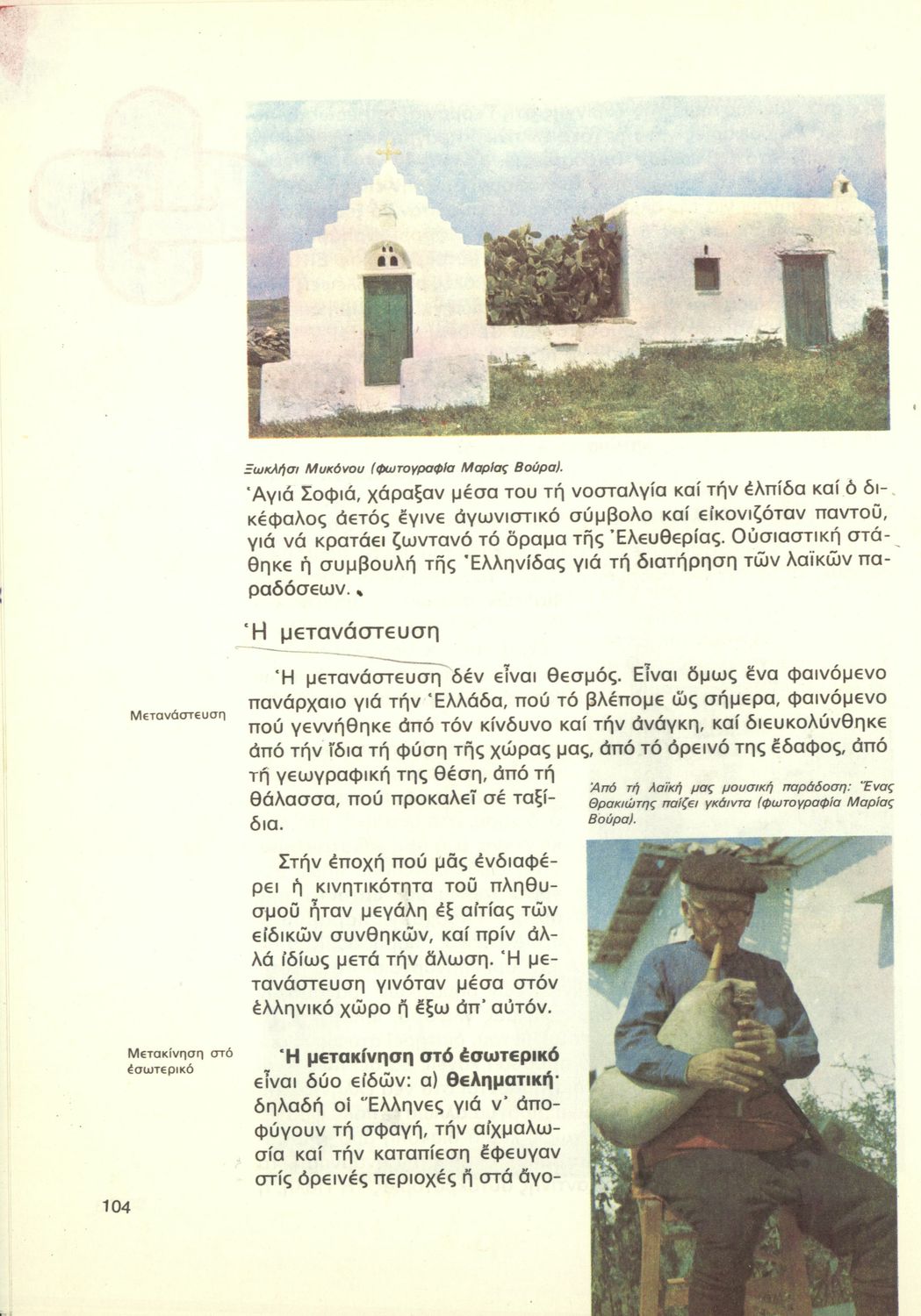 Σχολικό εγχειρίδιο Νέων Ελληνικών Γ΄ Γυμνασίου και Α' Αστικού Σχολείου που περιέχει πεζά και ποιήματα Ελλήνων συγγραφέων εμπνευσμένα από τη θρησκευτική και κοινωνική ζωή, την ελληνική μυθολογία, την αρχαία και