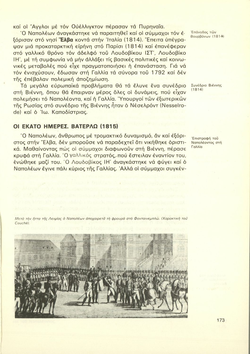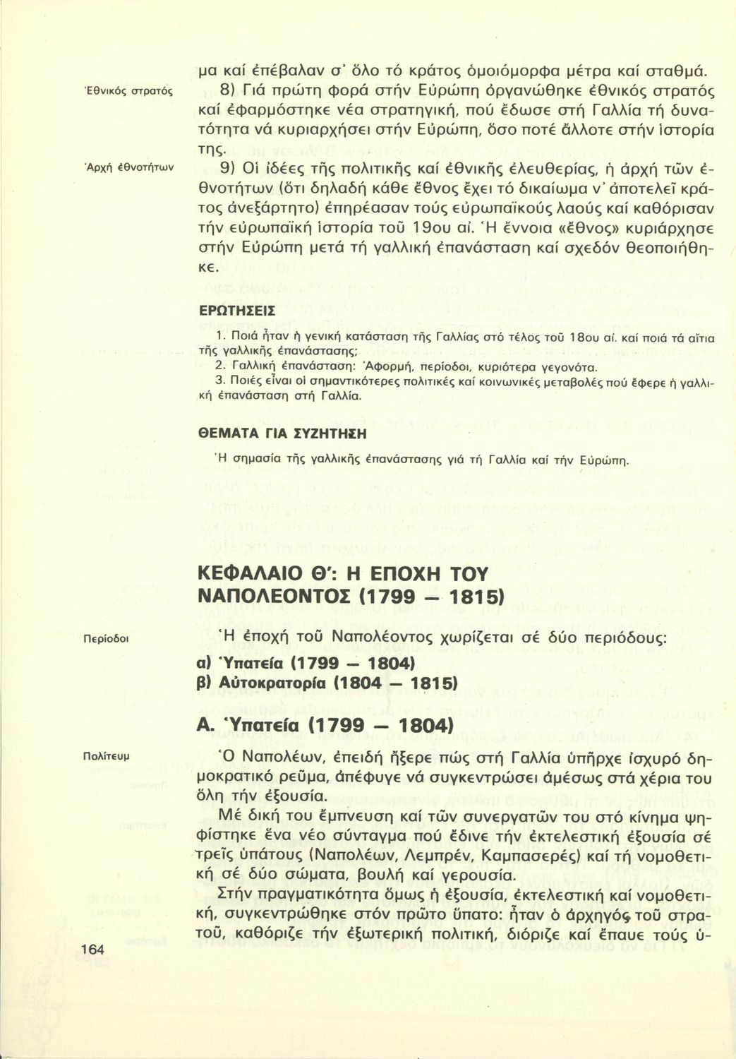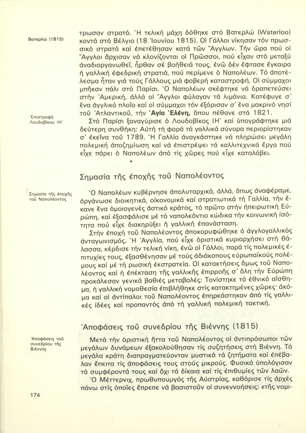Σχολικό εγχειρίδιο της Γ΄ Γυμνασίου για το μάθημα της Ιστορίας. Καλύπτει την ευρωπαϊκή ιστορία από το Συνέδριο της Βιέννης, την περίοδο της Αναγέννησης του διαφωτισμού και τα επιτεύγματά τους. Συνεχίζει με τη Γαλλική Επανάσταση, τους Ναπολεόντειους πολέμους, την προεπαναστατική περίοδο για τους Έλληνες. Έπειτα αναφέρεται στην Επανάσταση του 1821. Συνεχίζει με τα ιστορικά γεγονότα και τα ζητήματα που απασχολούσαν το ανεξάρτητο ελληνικό κράτος, τη Μ. Ιδέα, τους Βαλκανικούς, τον Α΄ Παγκόσμιο, τη Μικρασιατική Καταστροφή και φτάνει μέχρι τον Β΄ Παγκόσμιο. Τα τελευταία ιστορικά γεγονότα παρουσιάζονται συνοπτικά.