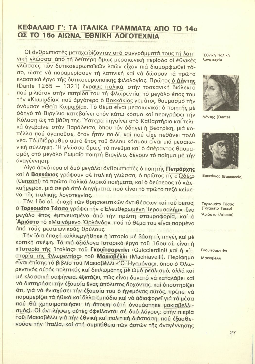 Σχολικό εγχειρίδιο Νέων Ελληνικών Γ΄ Γυμνασίου και Α' Αστικού Σχολείου που περιέχει πεζά και ποιήματα Ελλήνων συγγραφέων εμπνευσμένα από τη θρησκευτική και κοινωνική ζωή, την ελληνική μυθολογία, την αρχαία και