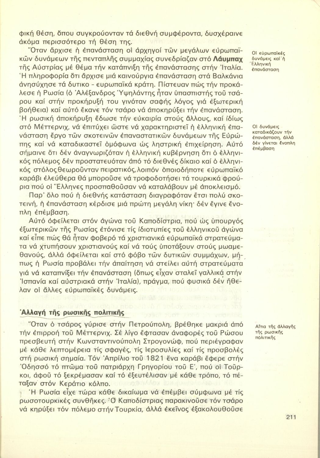Σχολικό εγχειρίδιο της Γ΄ Γυμνασίου για το μάθημα της Ιστορίας. Καλύπτει την ευρωπαϊκή ιστορία από το Συνέδριο της Βιέννης, την περίοδο της Αναγέννησης του διαφωτισμού και τα επιτεύγματά τους. Συνεχίζει με τη Γαλλική Επανάσταση, τους Ναπολεόντειους πολέμους, την προεπαναστατική περίοδο για τους Έλληνες. Έπειτα αναφέρεται στην Επανάσταση του 1821. Συνεχίζει με τα ιστορικά γεγονότα και τα ζητήματα που απασχολούσαν το ανεξάρτητο ελληνικό κράτος, τη Μ. Ιδέα, τους Βαλκανικούς, τον Α΄ Παγκόσμιο, τη Μικρασιατική Καταστροφή και φτάνει μέχρι τον Β΄ Παγκόσμιο. Τα τελευταία ιστορικά γεγονότα παρουσιάζονται συνοπτικά.