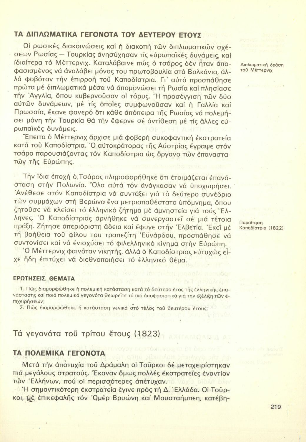 Σχολικό εγχειρίδιο της Γ΄ Γυμνασίου για το μάθημα της Ιστορίας. Καλύπτει την ευρωπαϊκή ιστορία από το Συνέδριο της Βιέννης, την περίοδο της Αναγέννησης του διαφωτισμού και τα επιτεύγματά τους. Συνεχίζει με τη Γαλλική Επανάσταση, τους Ναπολεόντειους πολέμους, την προεπαναστατική περίοδο για τους Έλληνες. Έπειτα αναφέρεται στην Επανάσταση του 1821. Συνεχίζει με τα ιστορικά γεγονότα και τα ζητήματα που απασχολούσαν το ανεξάρτητο ελληνικό κράτος, τη Μ. Ιδέα, τους Βαλκανικούς, τον Α΄ Παγκόσμιο, τη Μικρασιατική Καταστροφή και φτάνει μέχρι τον Β΄ Παγκόσμιο. Τα τελευταία ιστορικά γεγονότα παρουσιάζονται συνοπτικά.