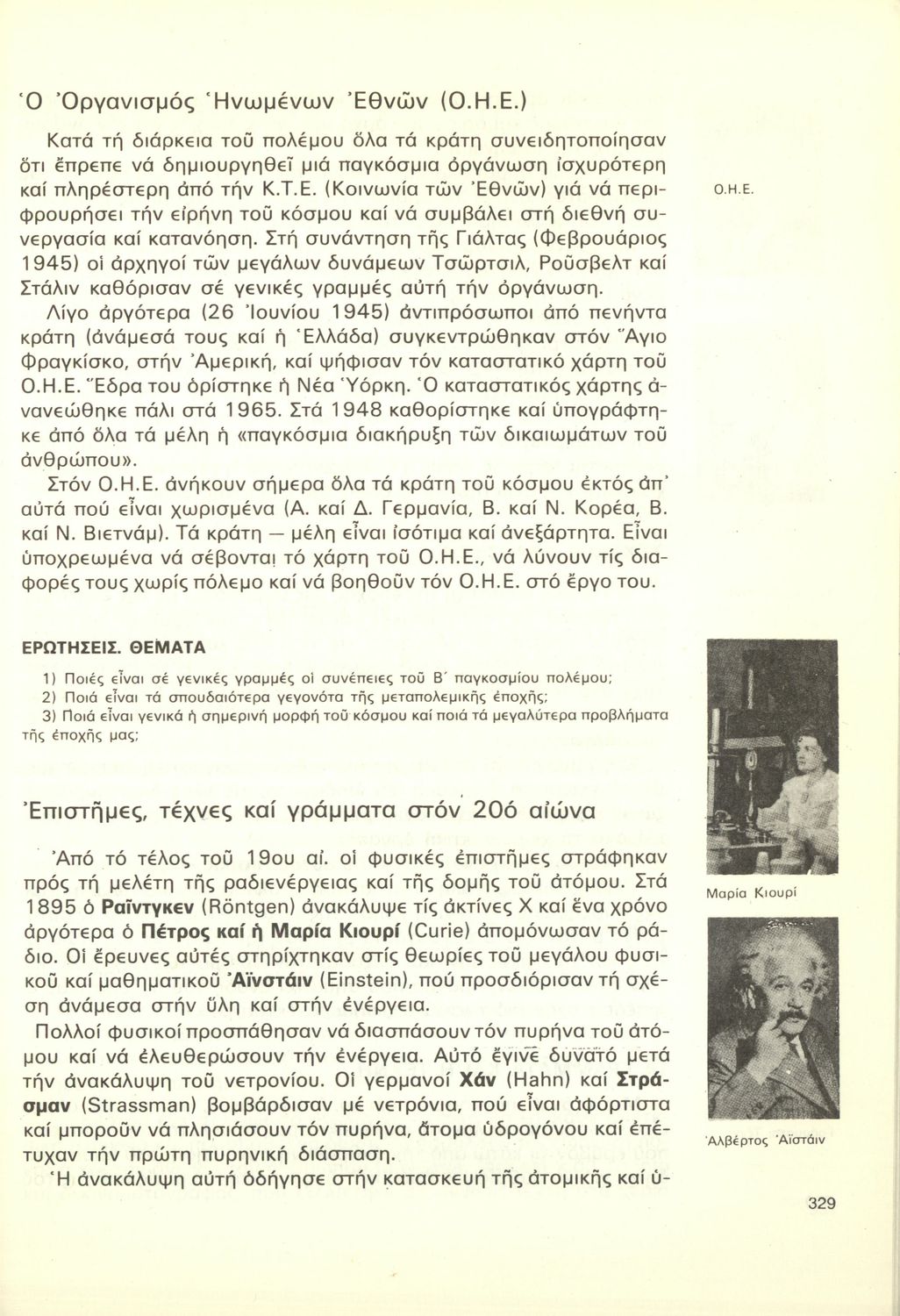 Σχολικό εγχειρίδιο της Γ΄ Γυμνασίου για το μάθημα της Ιστορίας. Καλύπτει την ευρωπαϊκή ιστορία από το Συνέδριο της Βιέννης, την περίοδο της Αναγέννησης του διαφωτισμού και τα επιτεύγματά τους. Συνεχίζει με τη Γαλλική Επανάσταση, τους Ναπολεόντειους πολέμους, την προεπαναστατική περίοδο για τους Έλληνες. Έπειτα αναφέρεται στην Επανάσταση του 1821. Συνεχίζει με τα ιστορικά γεγονότα και τα ζητήματα που απασχολούσαν το ανεξάρτητο ελληνικό κράτος, τη Μ. Ιδέα, τους Βαλκανικούς, τον Α΄ Παγκόσμιο, τη Μικρασιατική Καταστροφή και φτάνει μέχρι τον Β΄ Παγκόσμιο. Τα τελευταία ιστορικά γεγονότα παρουσιάζονται συνοπτικά.