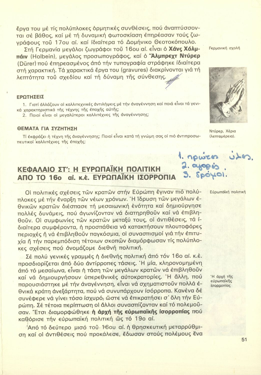 Σχολικό εγχειρίδιο Ιστορίας της Γ΄ Γυμνασίου. Το βιβλίο περιγράφει τη μετάβαση από την περίοδο των μοναρχιών και των αυτοκρατοριών στη δημιουργία των εθνών κρατών στην Ευρώπη. Εστιάζει στην Αναγέννηση και στον