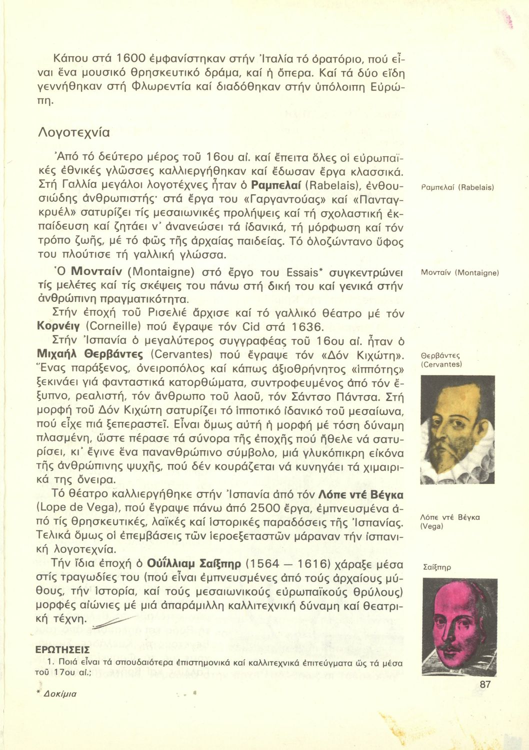 Σχολικό εγχειρίδιο Νέων Ελληνικών Γ΄ Γυμνασίου και Α' Αστικού Σχολείου που περιέχει πεζά και ποιήματα Ελλήνων συγγραφέων εμπνευσμένα από τη θρησκευτική και κοινωνική ζωή, την ελληνική μυθολογία, την αρχαία και