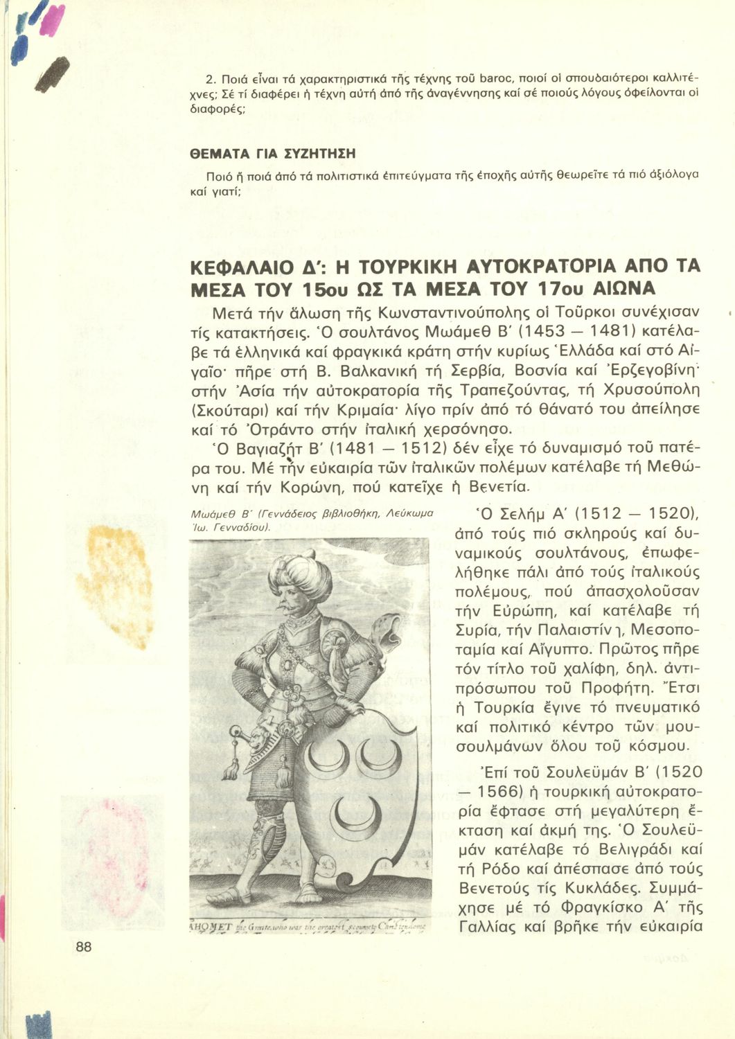 Σχολικό εγχειρίδιο της Γ' Ελληνικού Σχολείου για το μάθημα της Ιστορίας. Το εγχειρίδιο καλύπτει την περίοδο από την Φραγκοκρατία, τη Βυζαντινή Αυτοκρατορία, την άλωση, την Οθωμανική Κυριαρχία, την Ελληνική ...