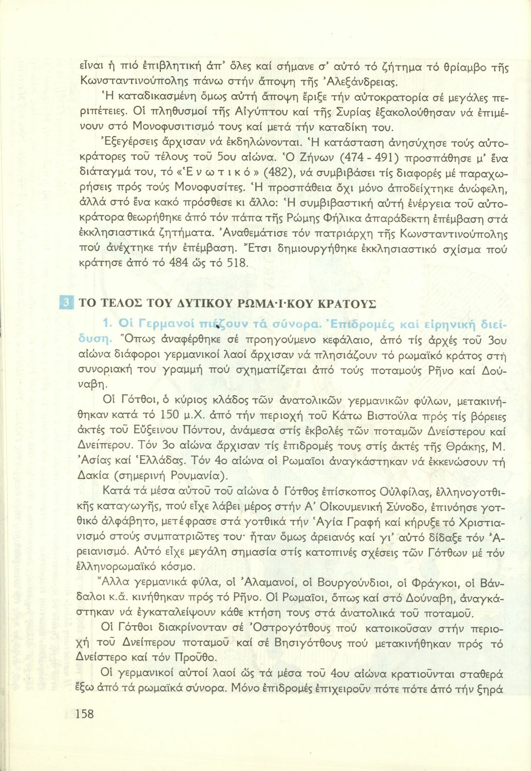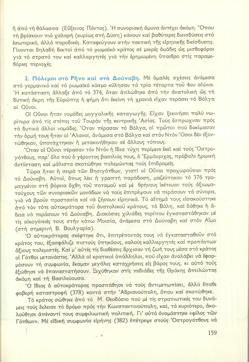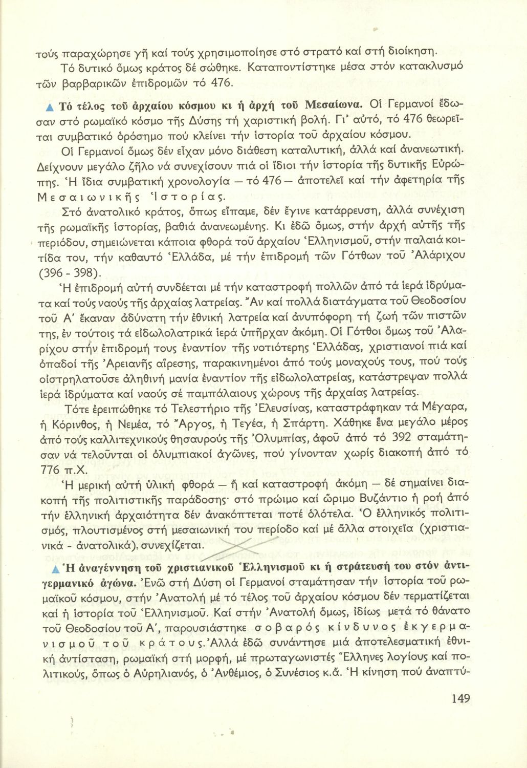 Σχολικό εγχειρίδιο Ιστορίας Β΄ Γυμνασίου που καλύπτει την περίοδο από την κατάληψη της Ελλάδας από τους Ρωμαίους ως την πτώση της Βυζαντινής Αυτοκρατορίας. Γίνεται ιδιαίτερη μνεία στο χριστιανικό και ελληνικό στοιχείο του Βυζαντίου. Προτείνει μια υλιστική ανάγνωση της Ιστορίας την οποία διαβάζει από την οπτική των κοινωνικών συγκρούσεων.