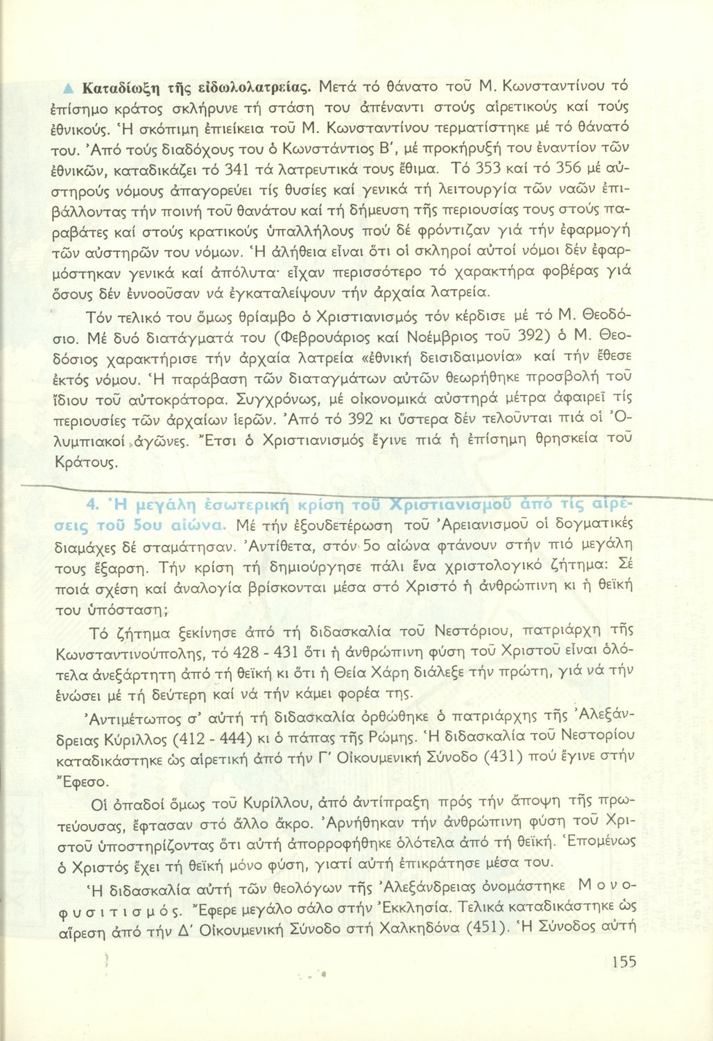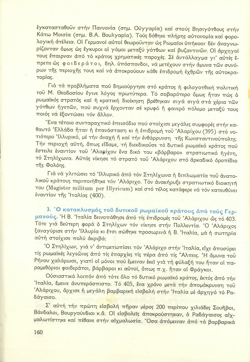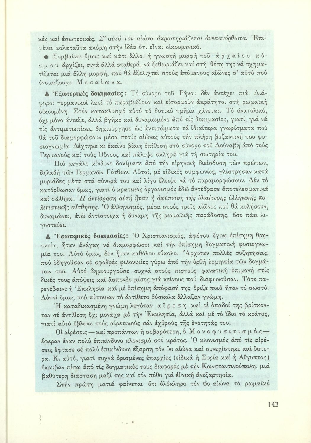Σχολικό εγχειρίδιο Ιστορίας Β΄ Γυμνασίου που καλύπτει την περίοδο από την κατάληψη της Ελλάδας από τους Ρωμαίους ως την πτώση της Βυζαντινής Αυτοκρατορίας. Γίνεται ιδιαίτερη μνεία στο χριστιανικό και ελληνικό στοιχείο του Βυζαντίου. Προτείνει μια υλιστική ανάγνωση της Ιστορίας την οποία διαβάζει από την οπτική των κοινωνικών συγκρούσεων.